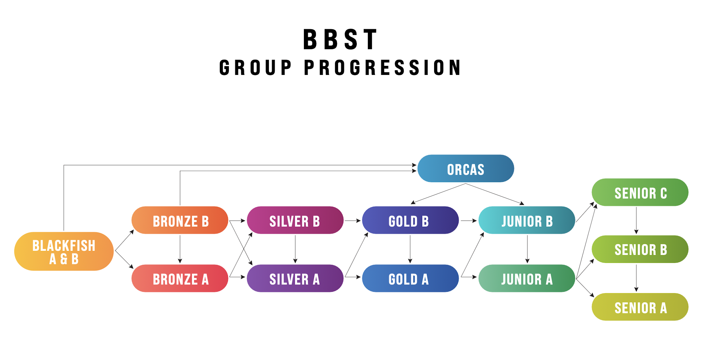 Group movement occurs in late December, early April, or August. The coaching staff determines swimmer placement and will notify families of impending group moves 6-8 weeks in advance of any change