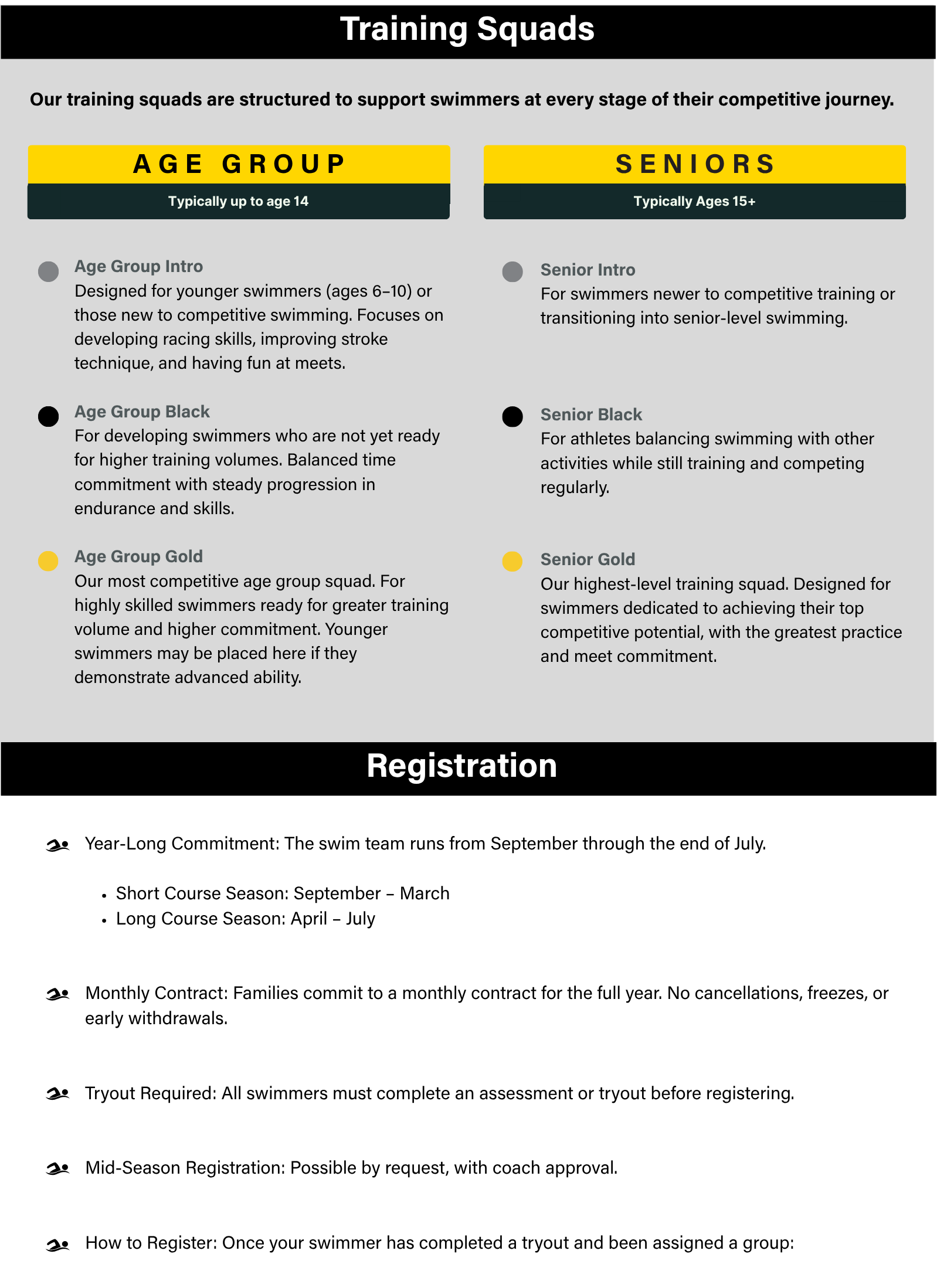• Swim Team Registration