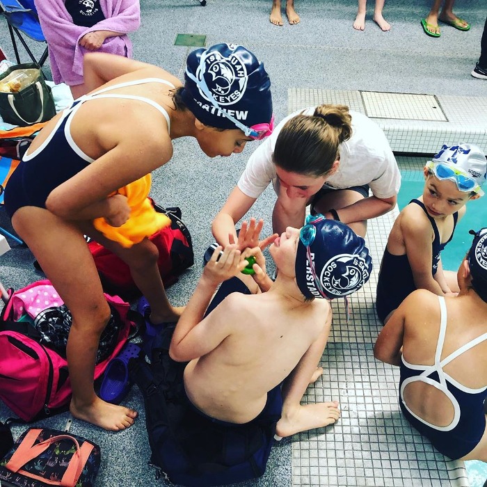 That support and strength in teammates was demonstrated through the presence of our senior squad swimmers who showed up to volunteer at the meet. It was great to see our most experienced athletes step up and help out their younger teammates! This meet was also an object lesson in the importance of community and coming together in that we would not have been able to hold the event without the support of our amazing parents and volunteers. A big thank you to all who stepped forward TOGETHER as timers, officials, announcers, runners, deck marshals, and more!