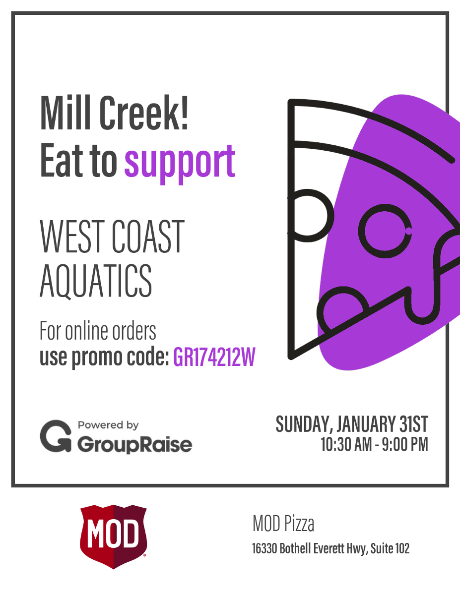 In Person Take out: Must reference “West Coast Aquatics Fundraiser” or bring event flyer with you when you order. (see attached flyer) The Fundraiser will NOT be applied towards WEST Coast Aquatics if you order by phone if calling into the location.