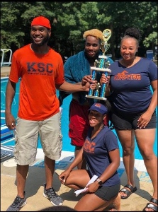 As Head Coach for Kingfish Swim Club, coach Anise has worked relentlessly with her own team: coach Micah, coach Chris and coach Kiara and with Kingfish swimmers, many of whom are ERSC year round athletes, to achieve another perfect score season (5-0), and solidify the dominance of Kingfish in the Prince Mount Summer League.