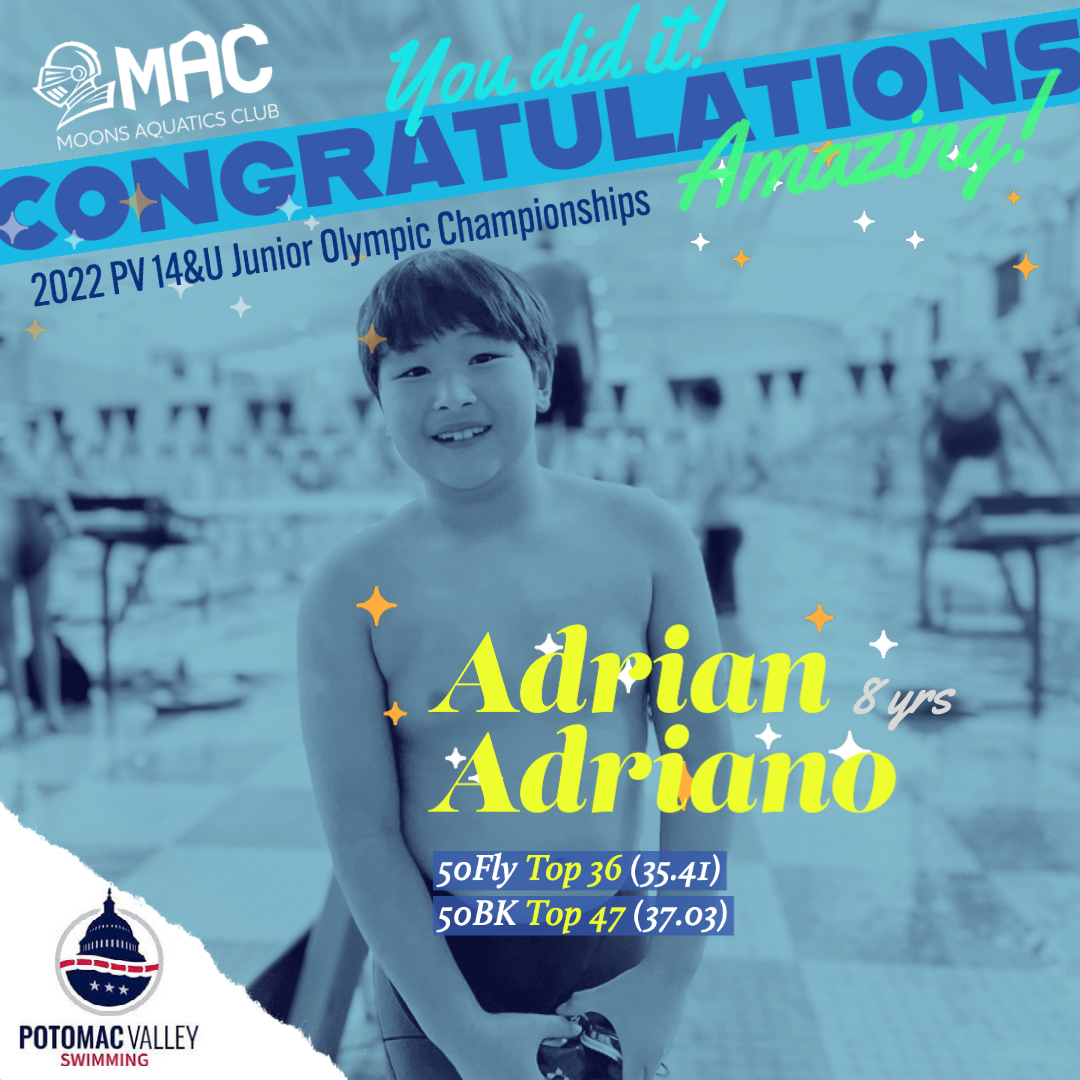 Congratulations to all of the Moons Aquatics Club's Junior Olympic Championship Qualifiers who performed amazingly on March 10- March 13 at the University of Maryland, Eppley Recreation Center. We at Moons Aquatics Club applaud the effort and dedication of the swimmers that participated.
