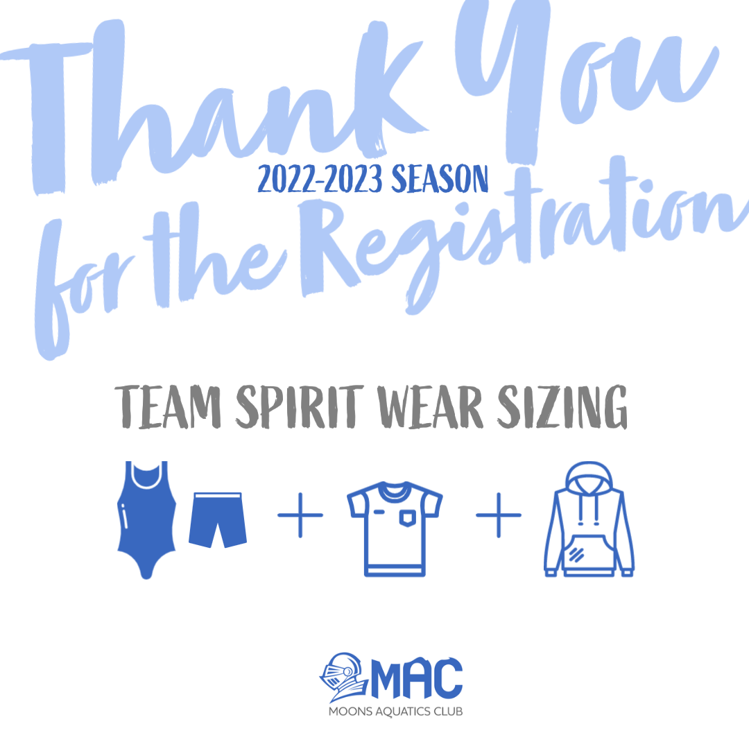 Thank you to the swimmers who registered for the 2022-2023 season. Before the new season starts, please reconfirm the size of your swimmer's swimwear by Jul 29, 1pm. Coach Joung may change some swimmers' sizes if he determines that the order is too small or too big.