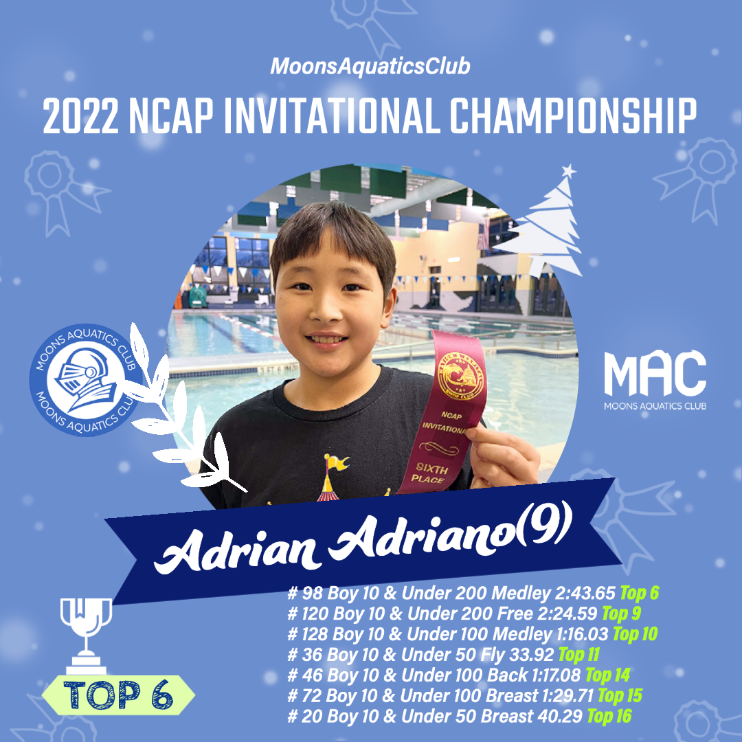 Congratulations to all of the Moons Aquatics Club's 2022 NCAP Invitational participants & finalists! We at Moons Aquatics Club applaud the effort and dedication of the swimmers that participated.