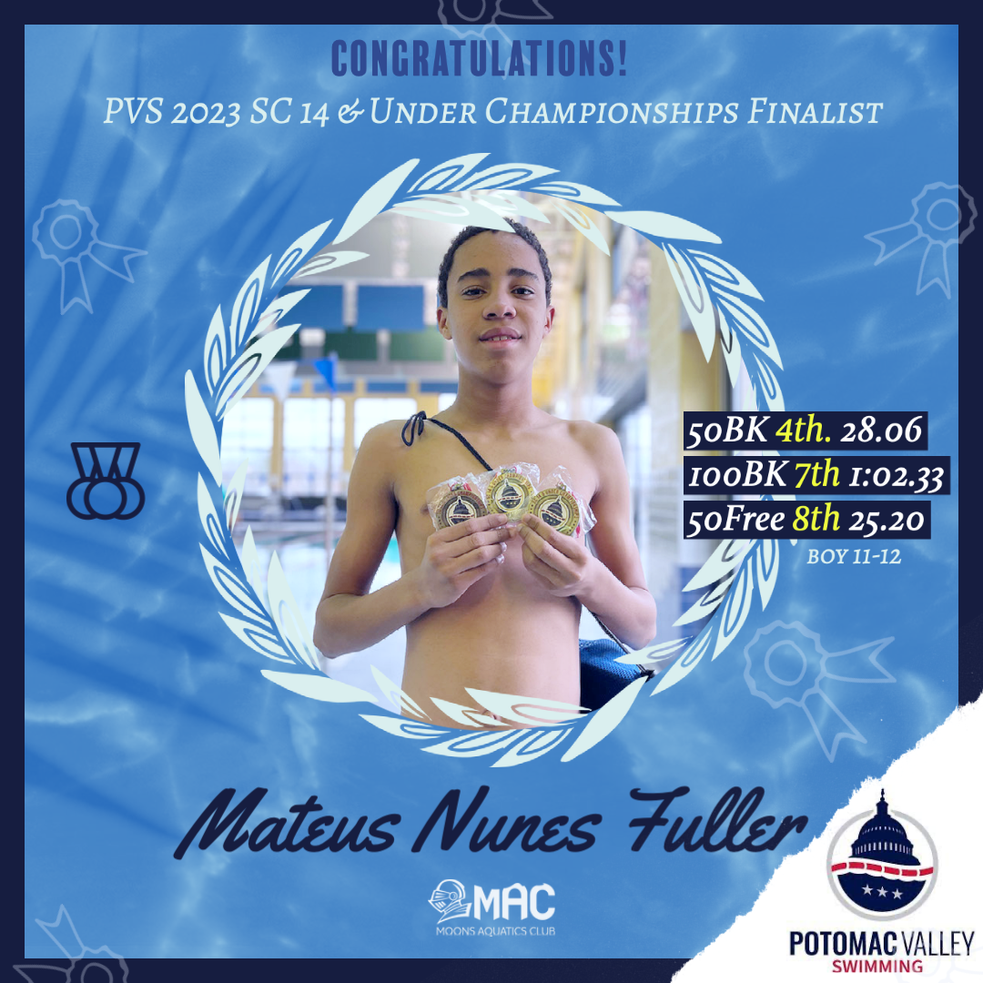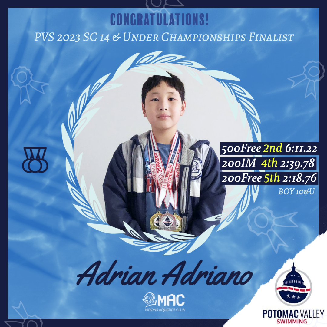 Our qualified swimmers competed at the PVS 2023 SC 14 & Under Championships on Mar 9-12 at the University of Maryland, College Park, MD. We at Moons Aquatics Club applaud the effort and dedication of the swimmers that participated.