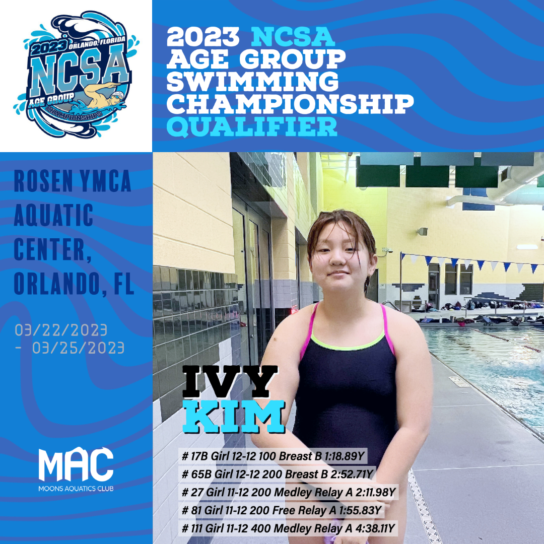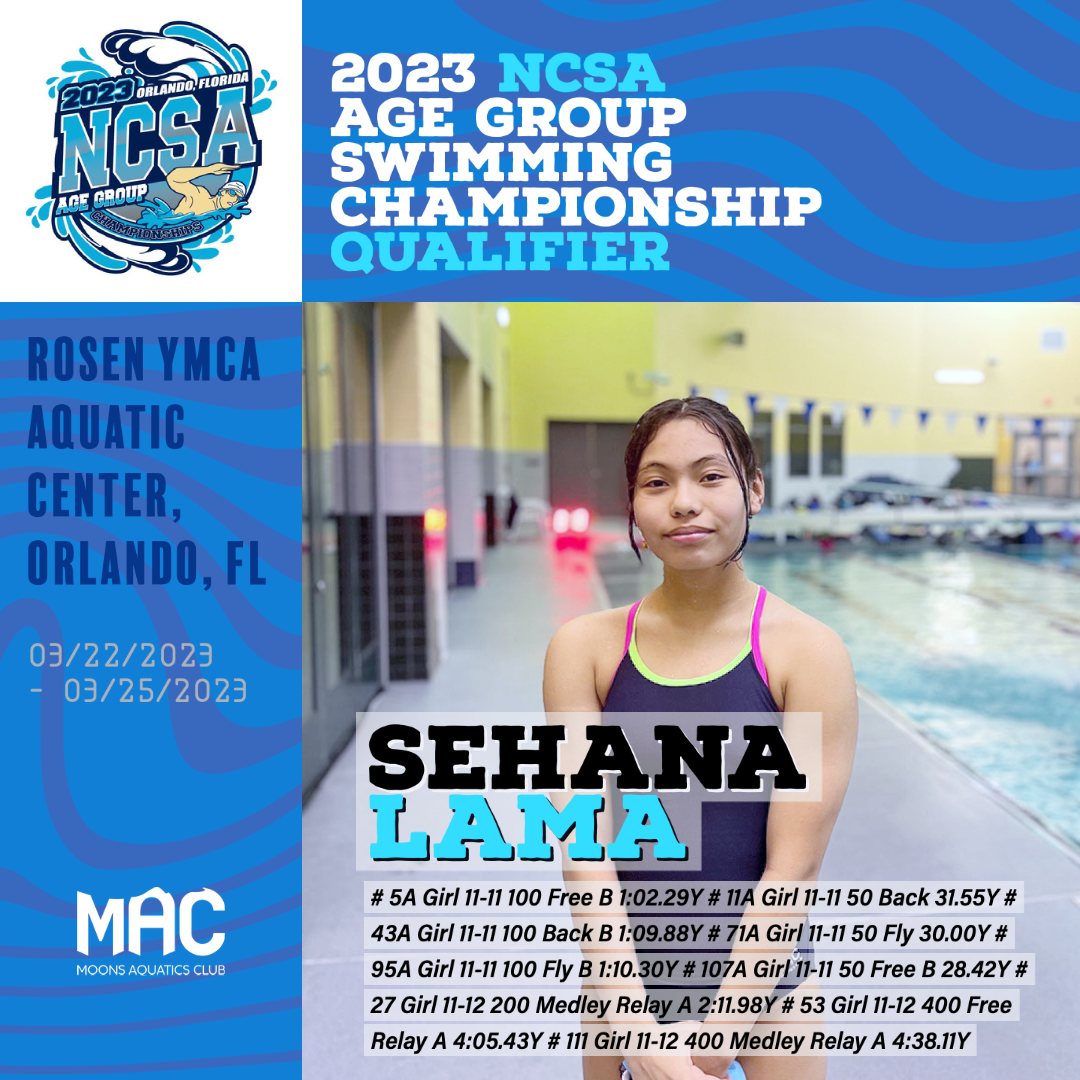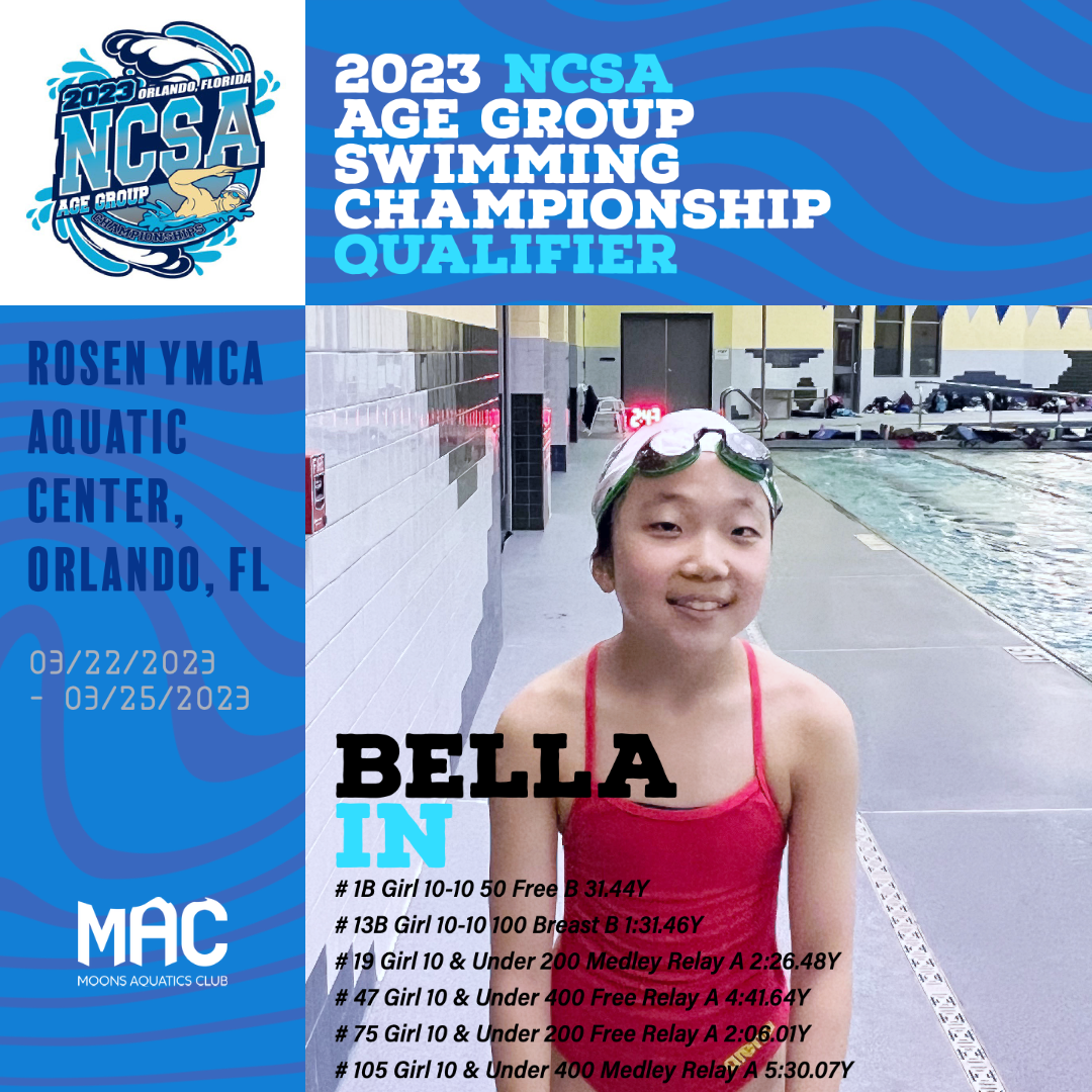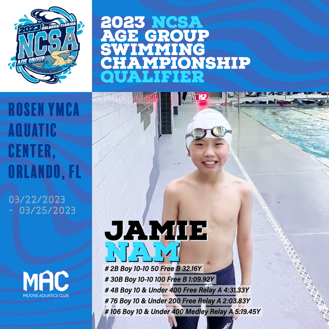 It is with great pleasure that we announce the following swimmers' qualifications for the NCSA Championship. This incredible accomplishment is a testament to your talent, discipline, and hard work. We wish you all the best at this prestigious event.