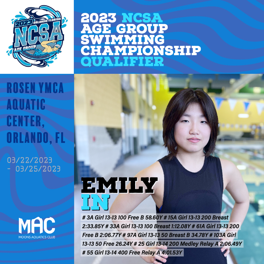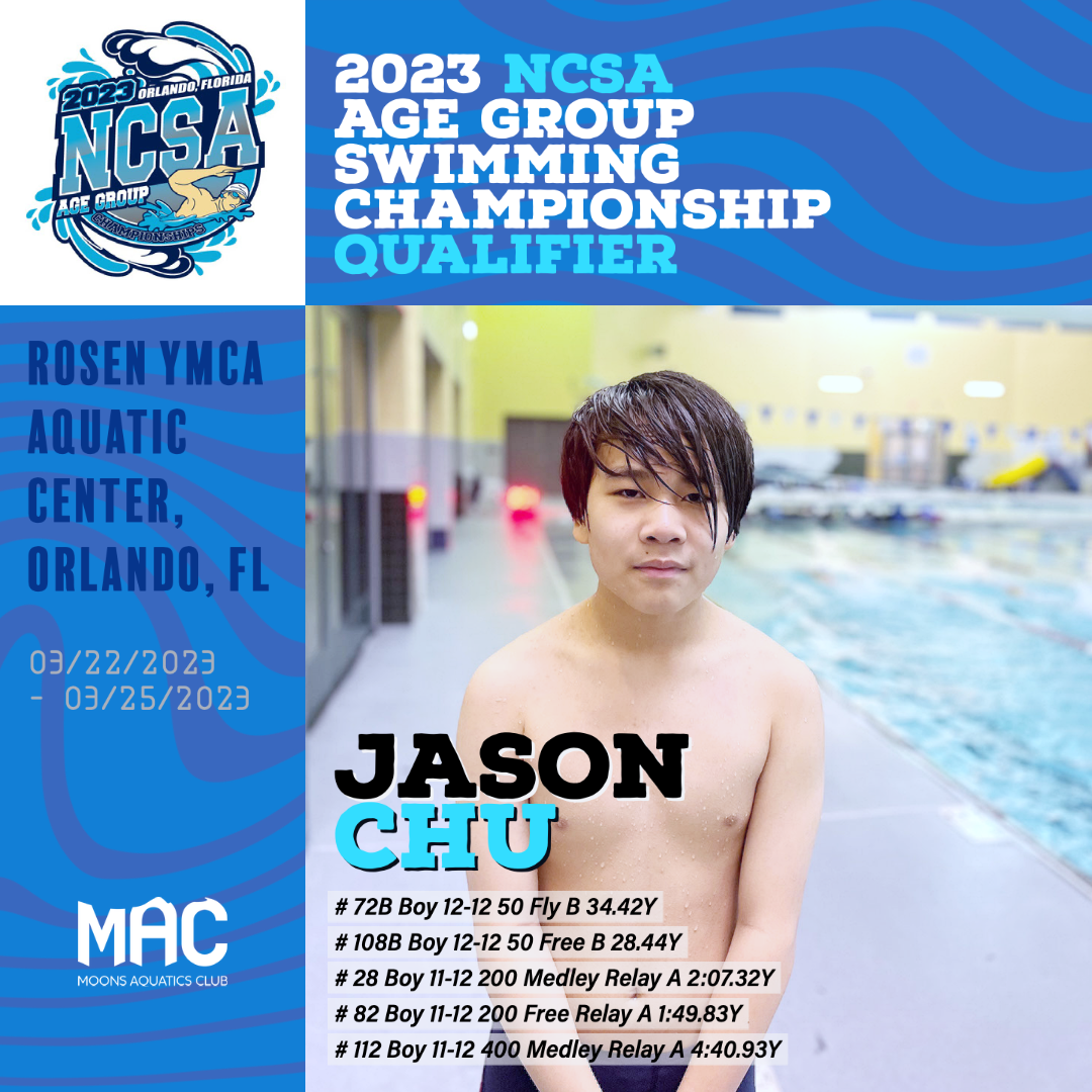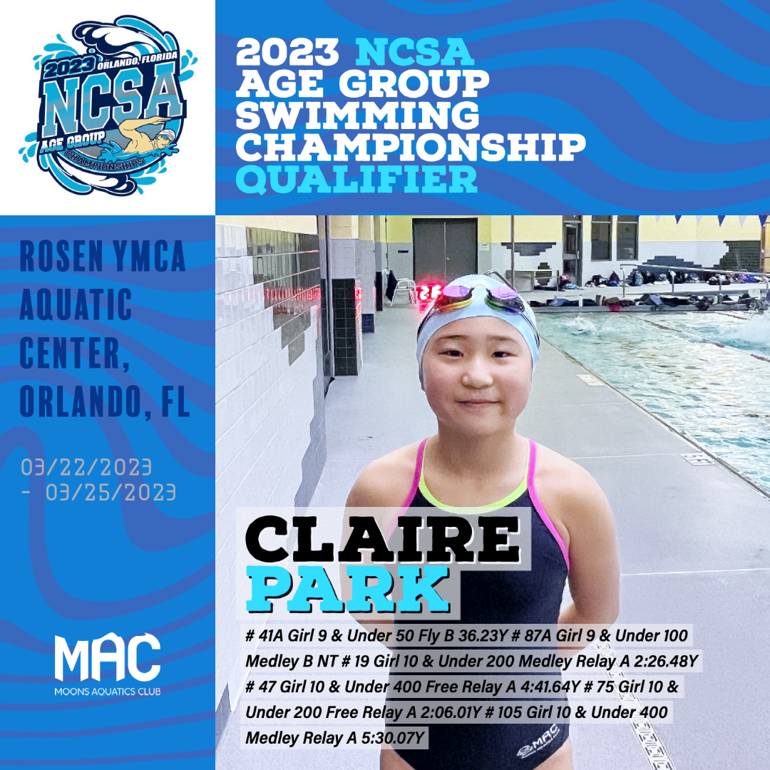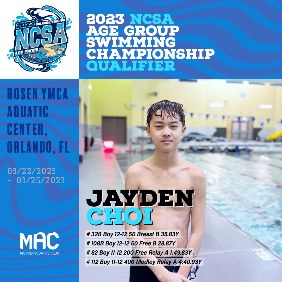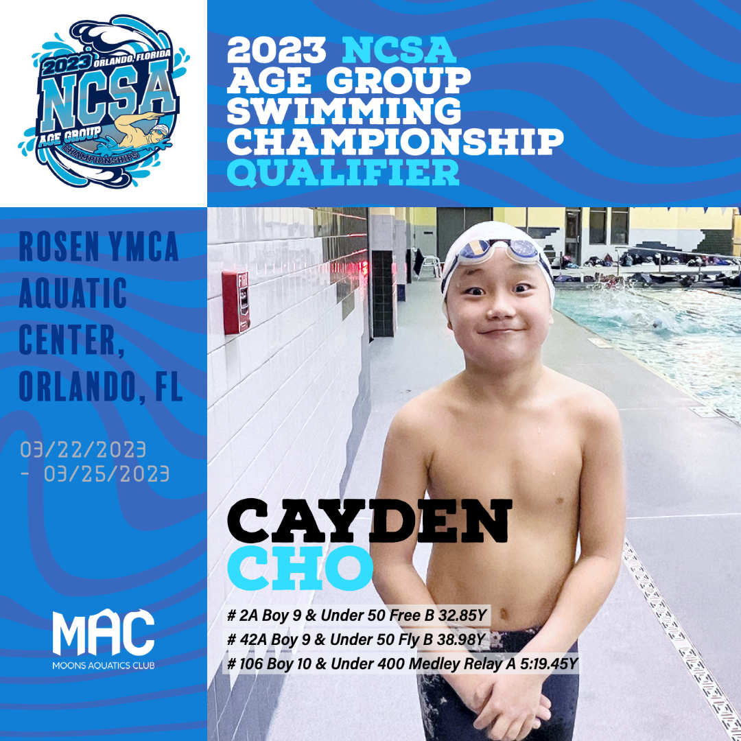It is with great pleasure that we announce the following swimmers' qualifications for the NCSA Championship. This incredible accomplishment is a testament to your talent, discipline, and hard work. We wish you all the best at this prestigious event.
