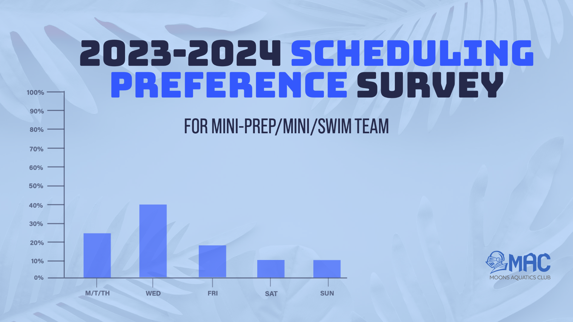 Please take a few moments to complete the following survey by indicating your preferred schedule for classes. Your feedback is valuable in helping us create a schedule that accommodates as many swimmers as possible.