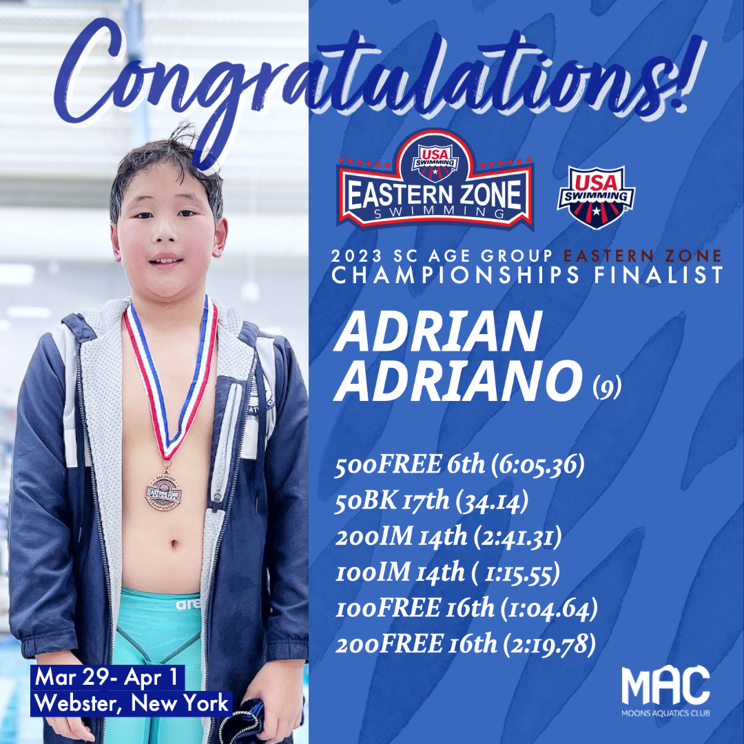 Congratulations to Moons Aquatics Club's 2023 SC Age Group Eastern Zone Championships Finalists!