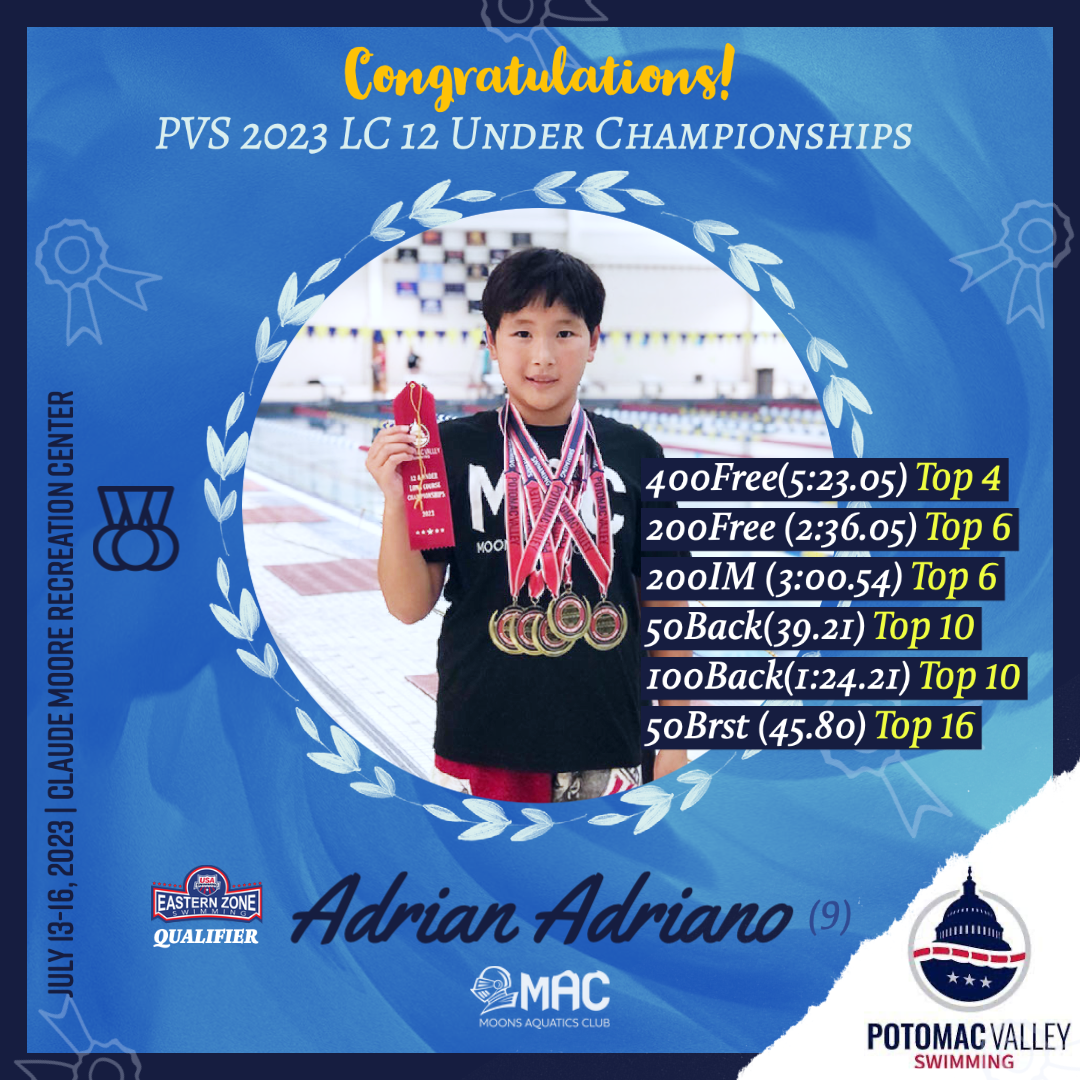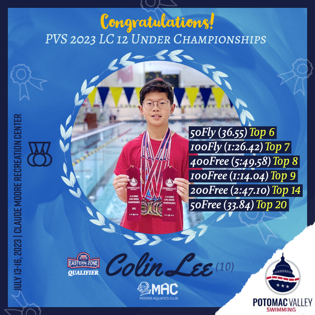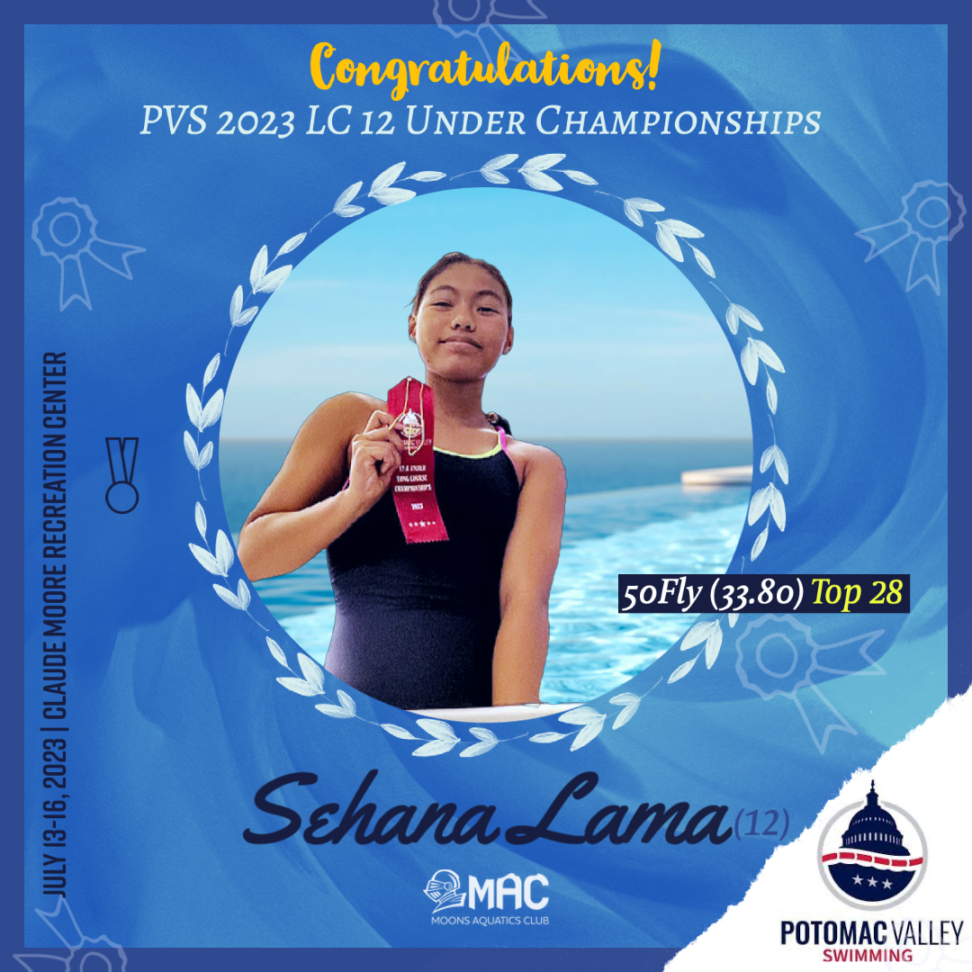 Congratulations to all the finalists and participants of Moons Aquatics Club's PVS 2023 LC 12 under Championships! Your exceptional performances at the championship held at Claude Moore recreation center from July 13th to 16th are truly commendable. We are extremely proud of your achievements and the way you represented Moons Aquatics Club.
