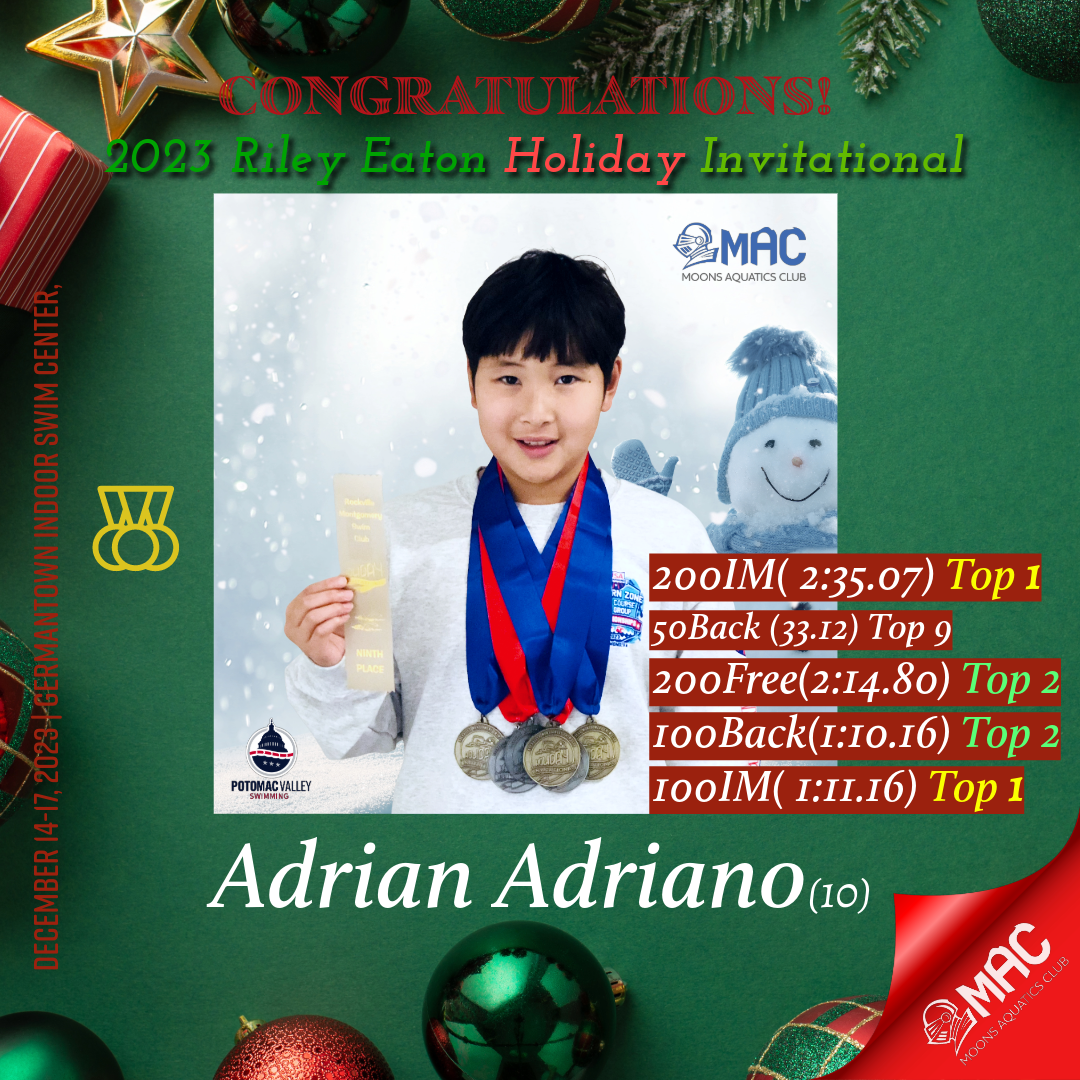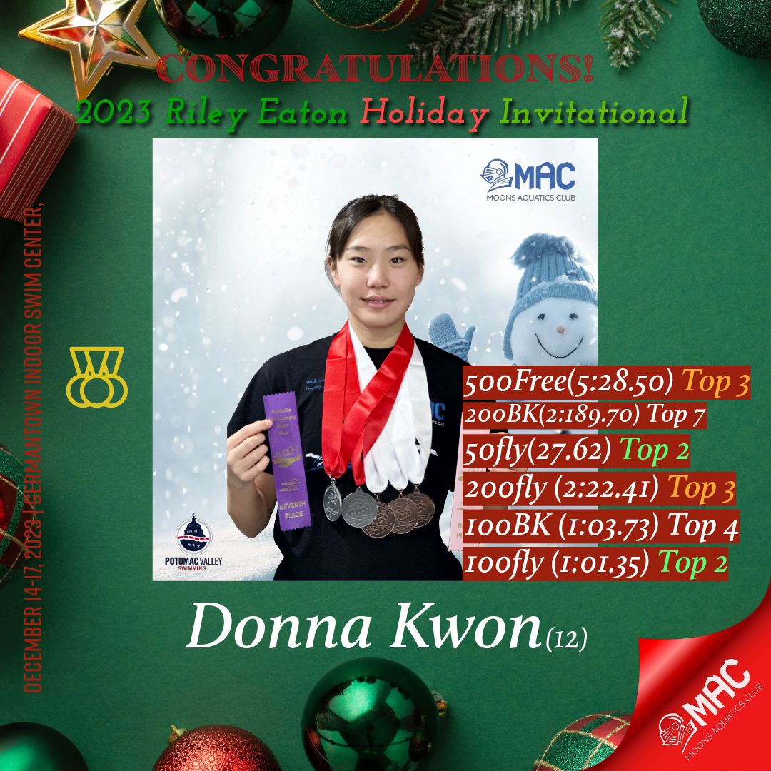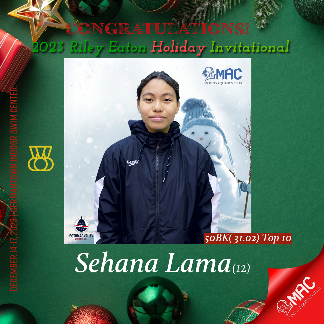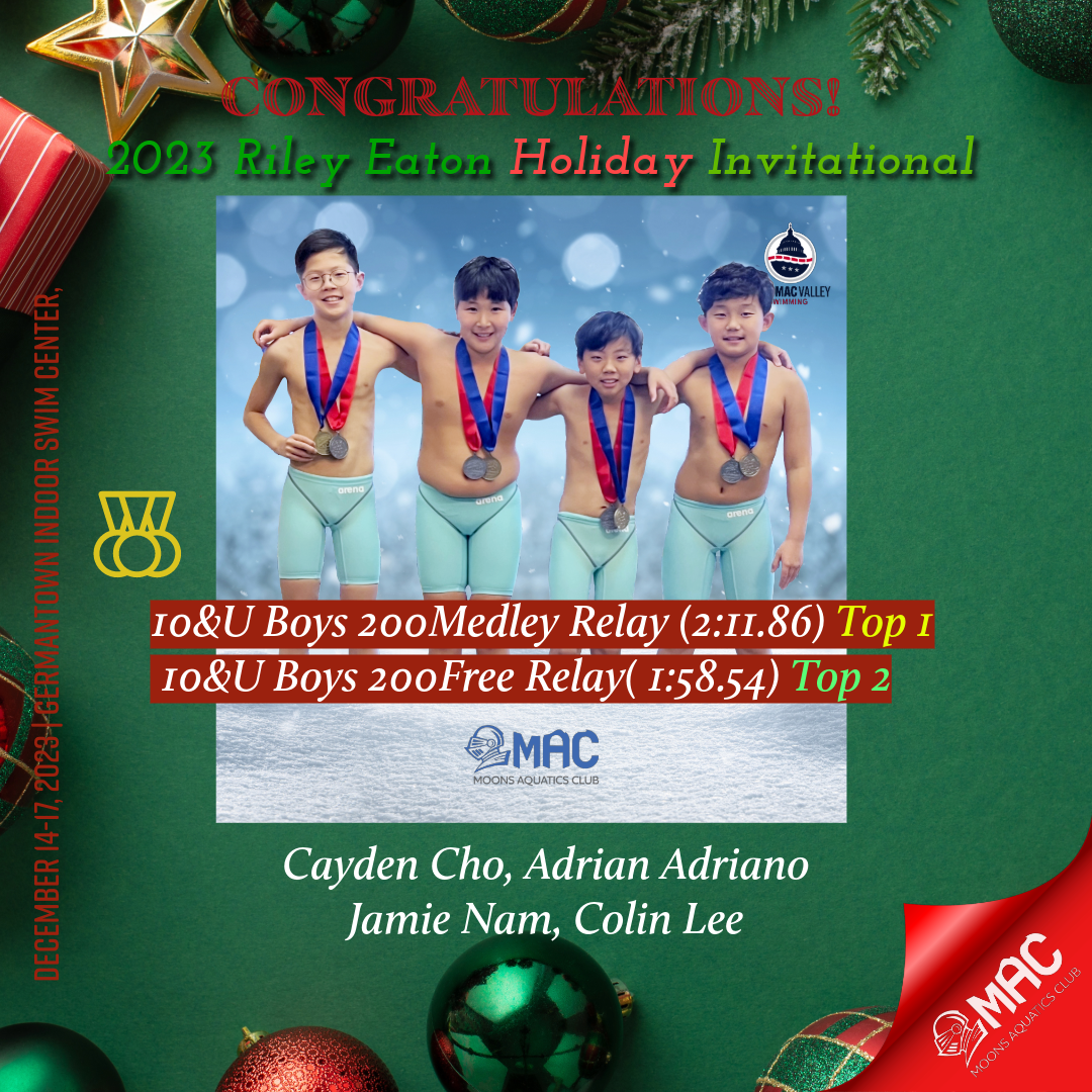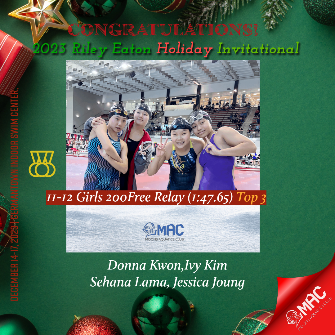 The 2023 Riley Eaton Holiday Invitational, held at the Germantown Indoor Swim Center from December 14th to 17th, showcased incredible talent and spirited performances from our dedicated swimmers. A heartfelt thank you goes out to every participant for their hard work and dedication.