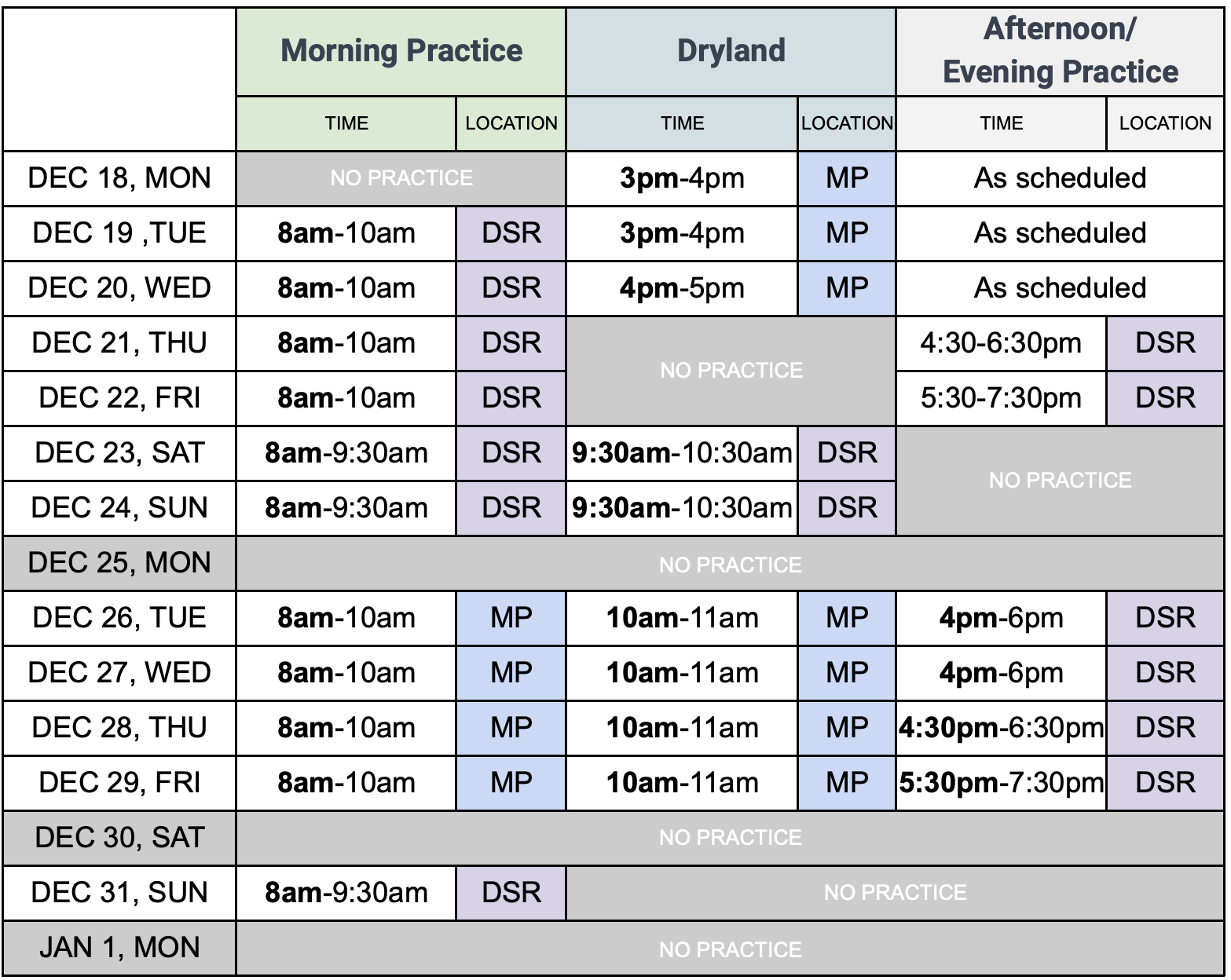 - Mako (Jan 6-7), PVS January Distance Meet (Jan 6-7): These meets will proceed as planned for those already registered. More detailed schedules will be updated soon.