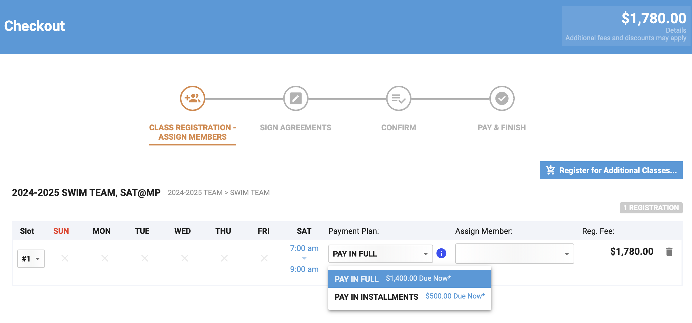 Choose "PAY IN INSTALLMENTS" as your Payment Plan at checkout.