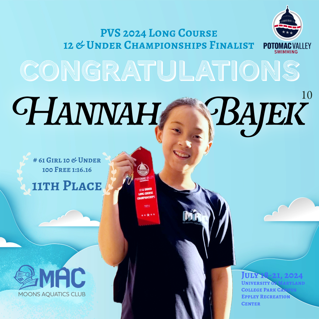 We are excited to celebrate the achievements of our swimmers who participated in the PVS 2024 Long Course Championships. We applaud all our swimmers who qualified and competed at this prestigious event. Your hard work and dedication have truly shone through, and we are proud of each and every one of you. A special congratulations goes out to our finalists, Miranda, Hannah, and Sophia, for their outstanding performances!