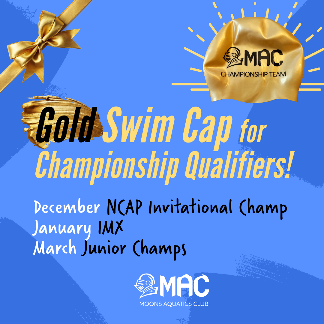 We are excited to announce that swimmers who qualify for the following championship events will receive a special Championship Gold Swim Cap: