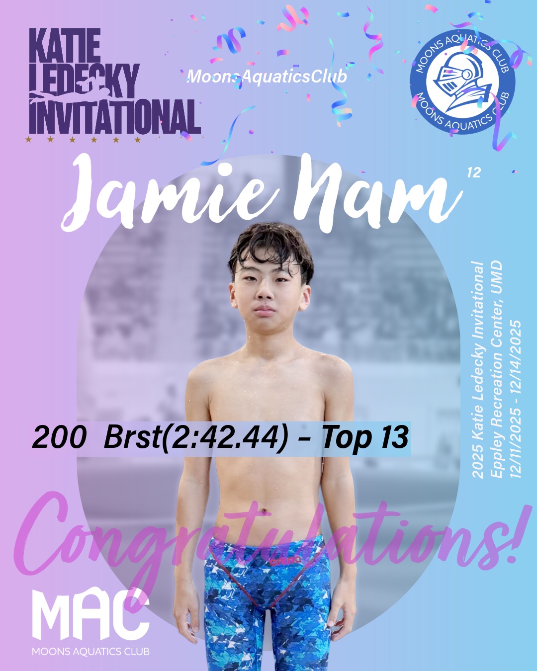 Congratulations to everyone on an outstanding meet!