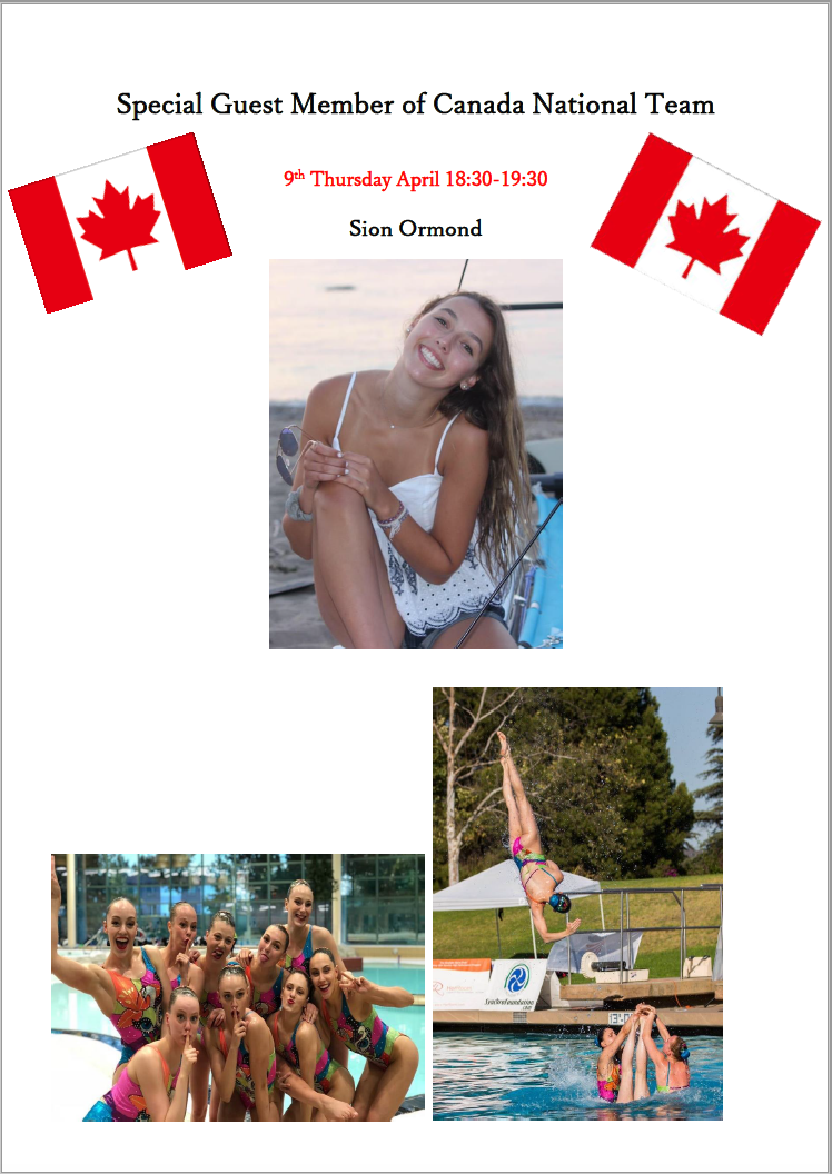 Coach Chihiro has organized a series of special events starting Friday April 3rd. Below is an overview of the scheduled events to bring the world of artistic swimming closer together while being apart.