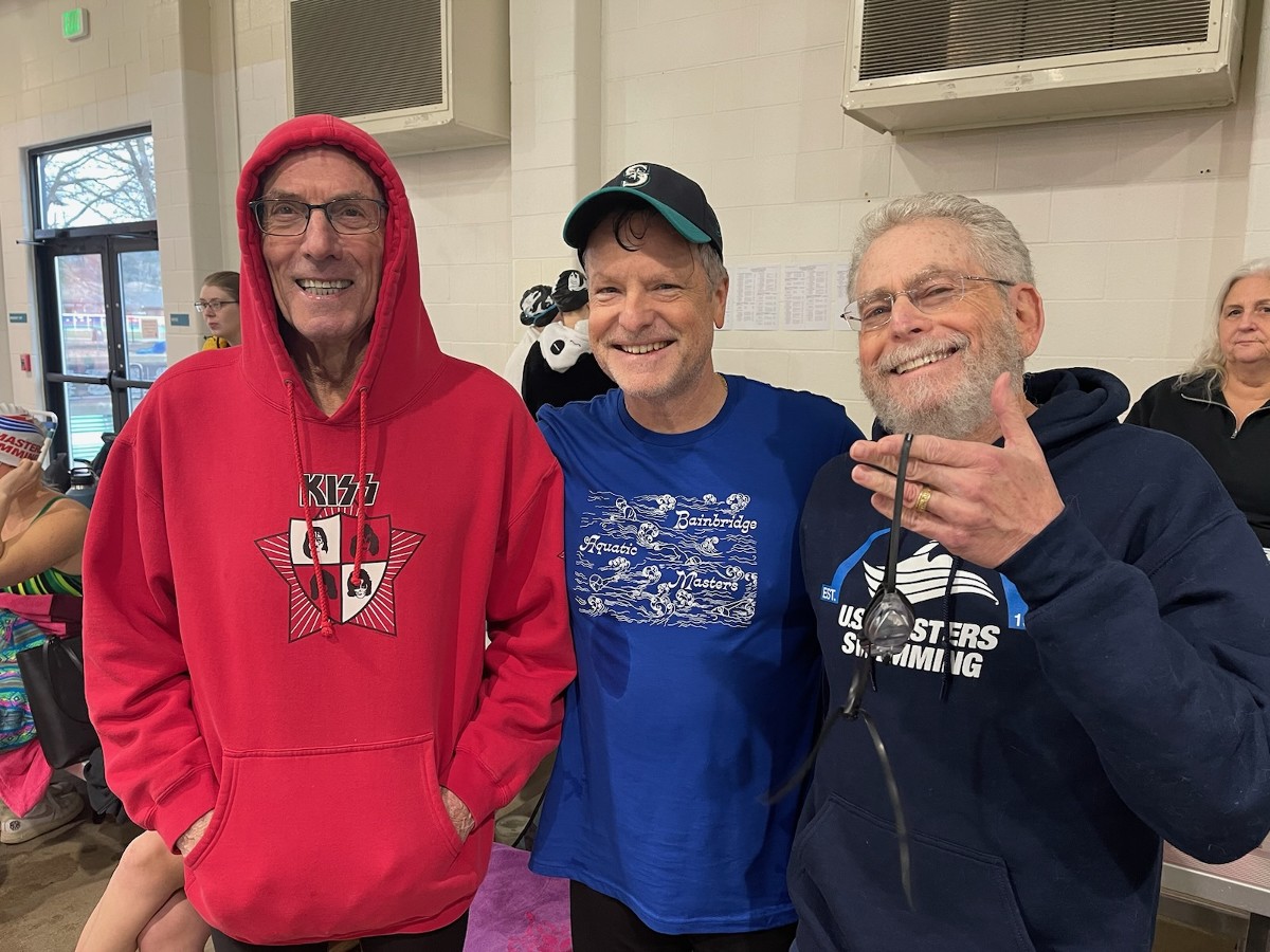 | Happy Wednesday, BAM! Congratulations to Steven Louis and Brad Payne for swimming the 50, 100, and 200 Breaststroke – and a little fly and IM, for good measure – at last weekend’s Viking Invitational! And kudos to Steve for achieving national qualifying times in the 100 and 200. Check out the SignUpGenius page to see their triumphant smiles as they hang out with fellow breaststroker Dick Peterson. News for the week: