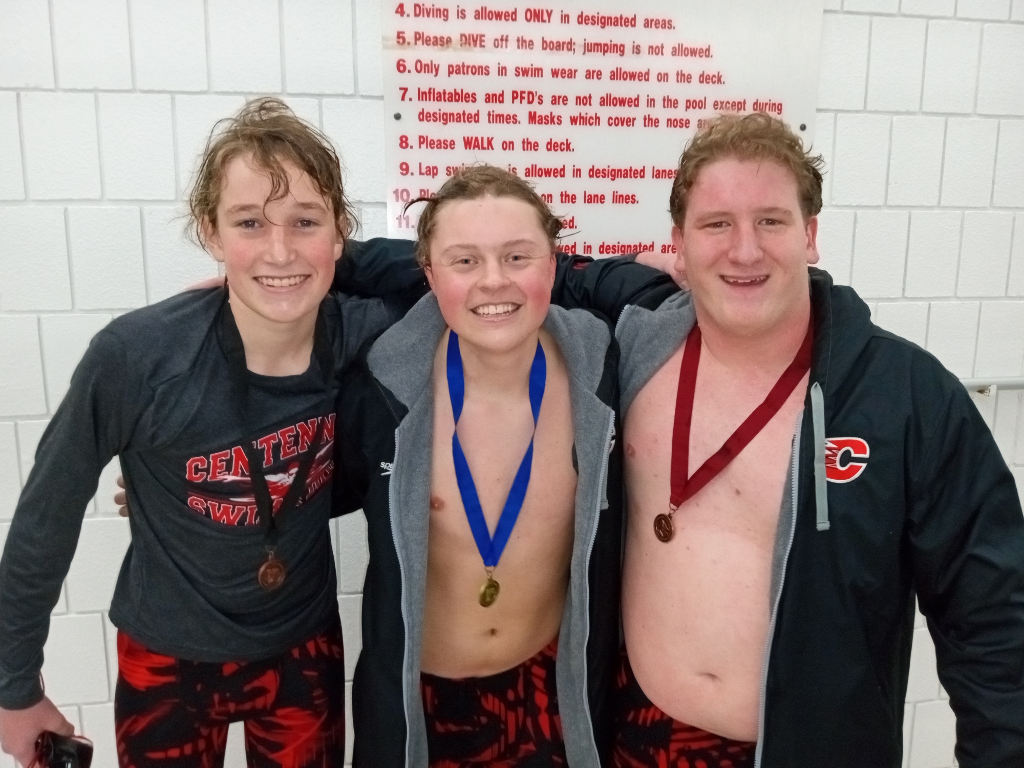 Senior Captain George Atkinson dropped 2.53 seconds in the 100 Backstroke and took home a gold medal with his first in the event. Other Centennial medal winners were: Max Scheurer, Alex Larkin, Ben Condon, Benno Schubauer, Isaac Nguyen, Manny Poscher, Garrett Clark, Joe Murray, Caleb Cregan, Talen Greson-Stormoen, and Tyler Celotta.