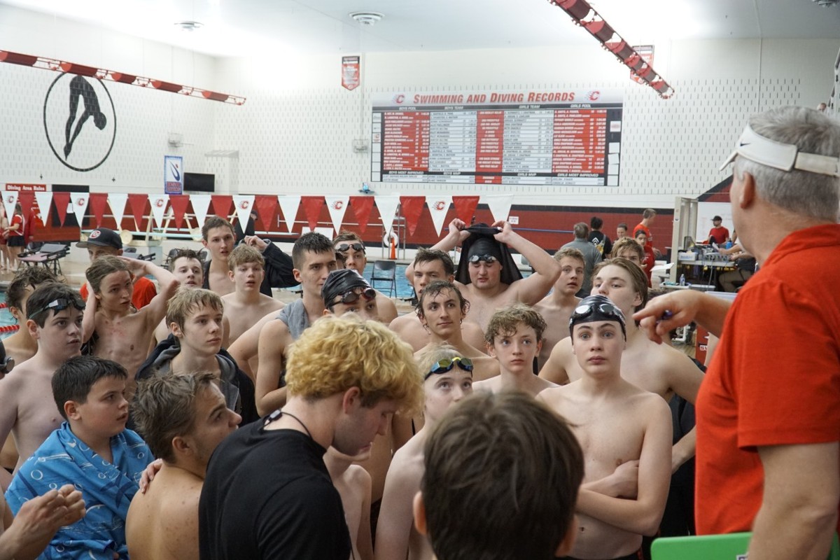 On Thursday, the Coon Rapids Cardinals made their way to the Centennial pool where the Cougars dominated in both swimming and diving. Winning 100-77, the boys got a taste of what it means to not only be dominant in the water but also showed great character rooting for each other as well as the Cardinals. As the boys continue to build sportsmanship and develop into gentlemen with strong character, it's worth mentioning the great leadership shown by our captains. Coach Pete's swimmer of the meet was senior and captain Isaac Nguyen who had notable races in both the 100 Varsity Butterfly (swimming a 57.29!) and the anchor of his 400 Freestyle Relay (Swimming at 50.34!). Long-distance swimmer and captain Brendan Chrieten got to swim the 50Free and the 100 breast stroke, showing the breadth of his skill.