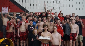 The Centennial Boys Swimming team posted 35 personal record swims, broke 3 middle school records and set a new varsity record at the 2022 Section 7AA Championship Prelims swimming meet that took place on Feb 25, 2022. 100% of the Centennial swims resulted in lifetime best times. The team members dropped a total of 127.47 seconds (2:12 minutes) off their seed times. In short, it was an amazing evening for the Cougars and their most successful meet of the season. Eighth grader Garret Clark dropped 25.17 seconds in the 500...