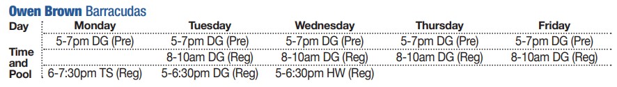 We encourage you to attend as many practices as possible, as the more you come, the more your swimming will improve. However, no practices are required. If some do not work with your schedule, it's fine! Just come to the ones that do! (In fact, part of the reason that we have practices at different times of day is to allow for different types of schedules.) It is not necessary to inform us if you're going to miss practice, and there is no penalty beyond having missed out on the experience. (Note: We do ask that you let us know ahead of time if you are going to miss a competitive meet.)