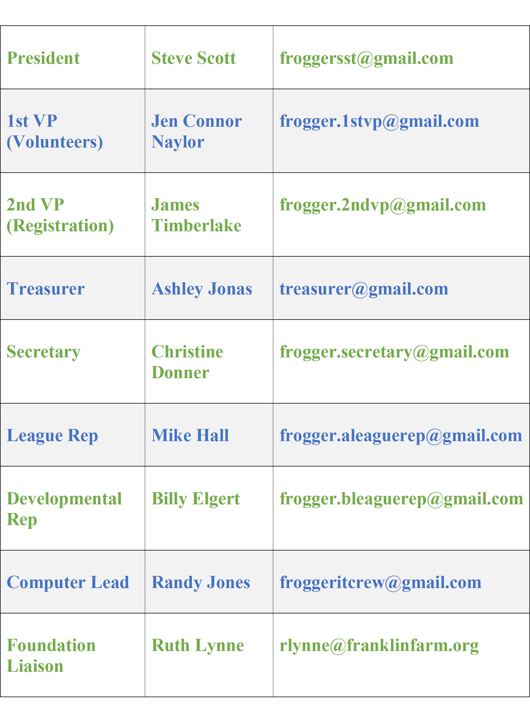 The Board positions are established by the Franklin Farm Swim Team Bylaws. Board Members are elected in July to serve a two-year term that begins in September. A Nominating Committee surveys team parents to determine a roster of interested candidates.