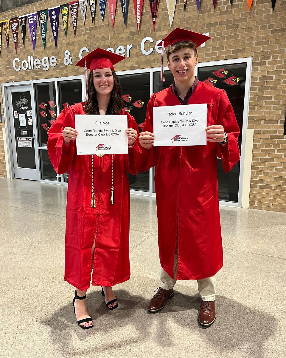 Nolan and Ella won the scholarships from CR Swim + Dive Booster Club. Good luck with all your future endeavors! We miss our seniors already!