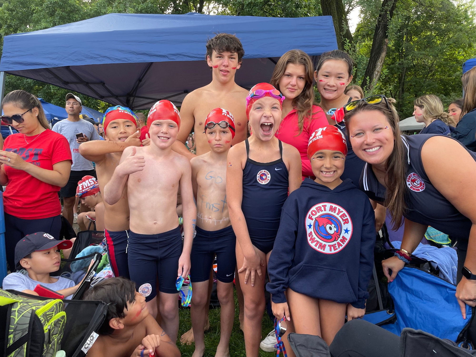The Fort Myer Swim Team strives to instill an appreciation for the sport of swimming in our swimmers, their parents, and our community. Our summer program promotes healthy competition, builds self-esteem, fosters friendship, and emphasizes fun. While swim meets are indeed a competitive event, it is most important that the kids have fun, enjoy their time at the pool, and develop strong swimming skills. Since 1961, our team has proudly enjoyed an affiliation with the Fort Myer Officers Club (renamed Patton Hall in 2017) and the Joint Base Myer - Henderson Hall community. The Squids are in the White Division of the Colonial Swim League (CSL).