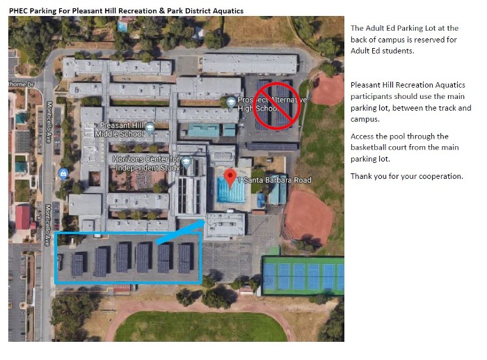 All Dolfins swimmers, parents and coaches should park in the main parking lot (between the track and campus) or the blacktop area by the tennis courts. Dolfins should NOT park in the Adult Ed Parking lot at the Ed Center. The gate on the Adult Ed side of the pool will be locked and you will not be able to enter the pool from the Adult Ed parking lot. We (and Adult Ed) appreciate your cooperation in leaving the Adult Ed Parking lot open for Adult Ed students.