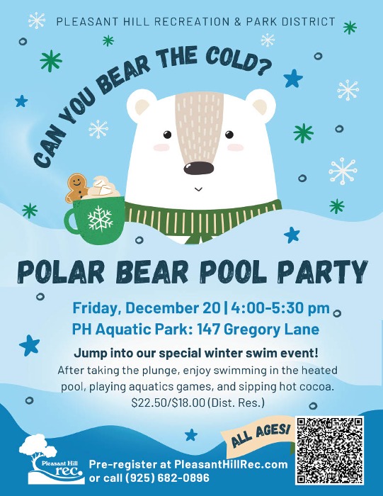 Can You Bear the Cold? Kick off winter break with a pool party! Enjoy swimming in the heated pool, aquatics games and hot cocoa. Are you brave enough to test the chilly waters of the training pool? Event is for all ages and will be held rain or shine. Register Here!