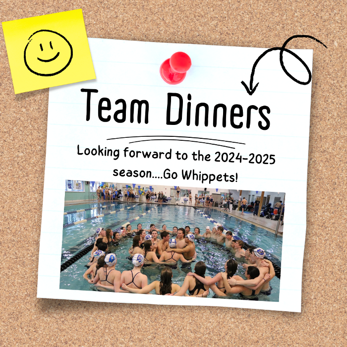 Below is the schedule of our team dinners for the 2024-2025 season. Each team dinner is scheduled on the night before a meet, with the exception of the last dinner which will take place after the JV Invitational and the ChesMont Invitational meets have concluded that week. Many thanks to our families for volunteering to host the team dinners!