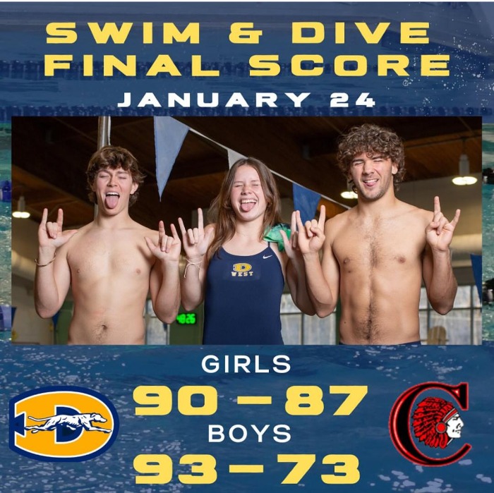 Another fantastic meet for West’s divers! Every single diver hit their lists 6 for 6 which allowed both Dobrys to earn 1st place. Senior Reilly Durkin and junior Mia Enterline both looked super strong the entire meet; Reilly’s focus allowed her to throw an inward flip despite assistant coach Carter’s attempt at distracting her. Freshman Tessa Dobry threw some new dives that allowed her to score a district qualifying score. Both senior Nolan Dobry and senior Jamie Compher had great meets, both boys soar sky high on their reverses. Great job divers! Thank you to senior Will Vaughen for cheering on his teammates despite injury and sophomore Liam Dennin for cheering on his teammates from afar as he recovers at home.