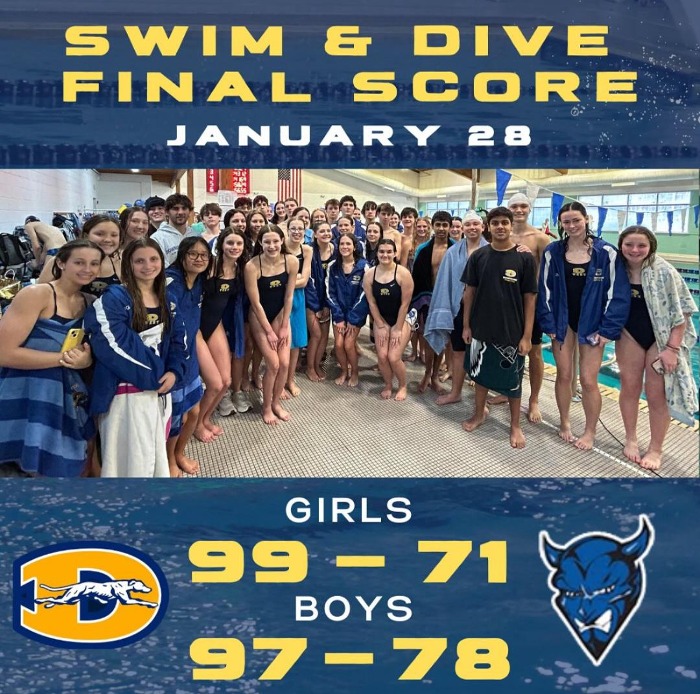 Tuesday’s meet was a senior showdown! Reilly Durkin, Nolan Dobry, and Jamie Compher had a great time diving together in one of their last home meets together. Since it was just the three of them, Reilly Durkin was able to earn points for the team by securing 1st place. Nolan Dobry (1st place) and Jamie Compher (2nd place) also earned points for the team which allowed us to be victorious over Kennett Square. Way to go, seniors! Thank you to senior Will Vaughen and sophomore Kaylie Thompson for being there to cheer their teammates on!