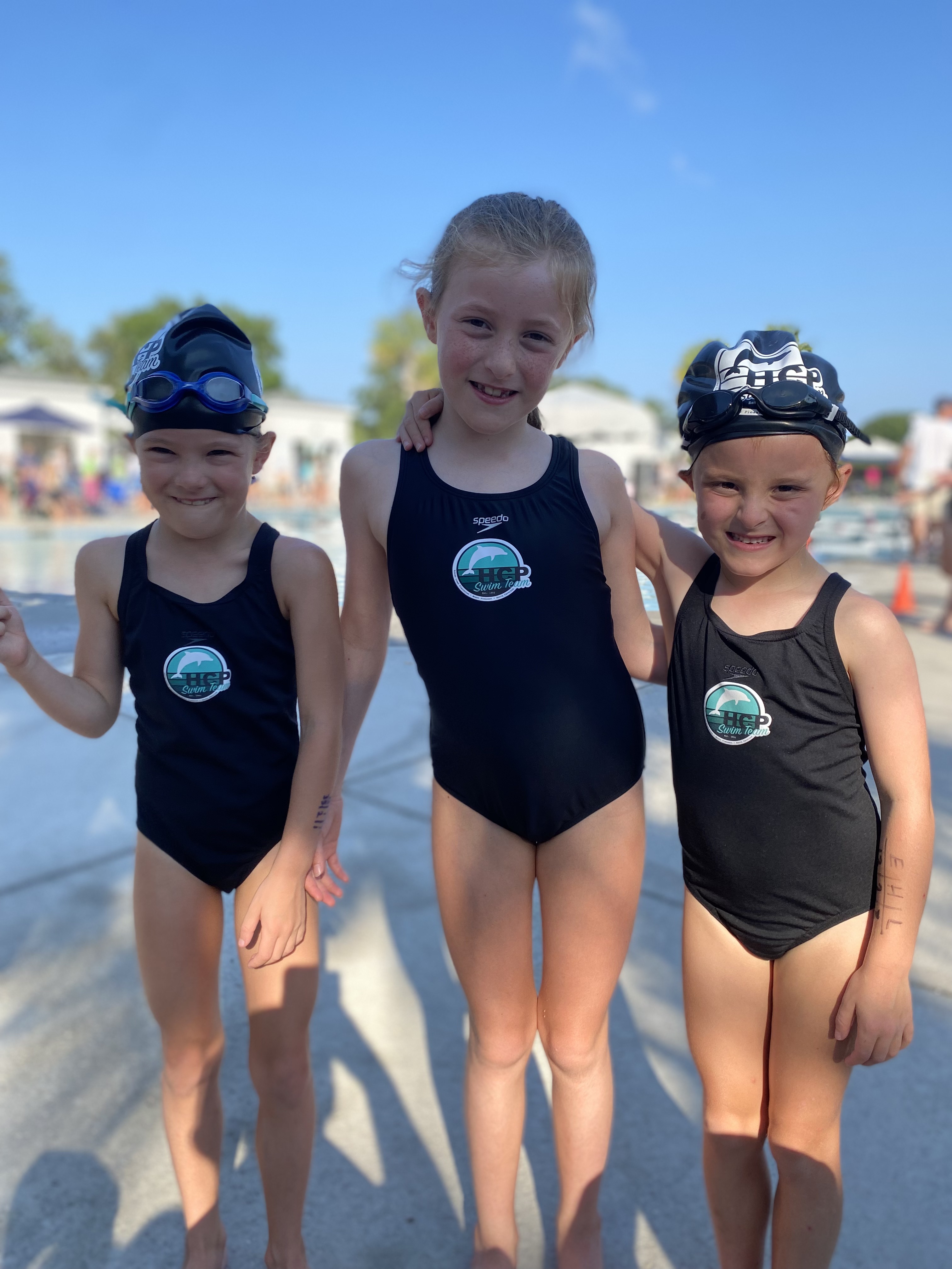 Only a black one piece swimsuit (girls) or black swim shorts (boys) - preferably with the HCP Dolphins logo - is REQUIRED for swim meets. Visit Time Out Sports in Mount Pleasant to have our team logo adhered to swimsuits.