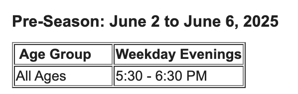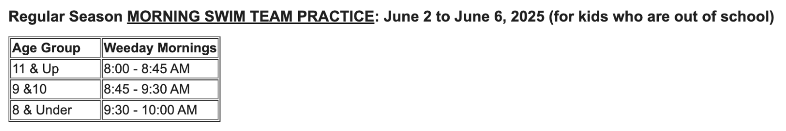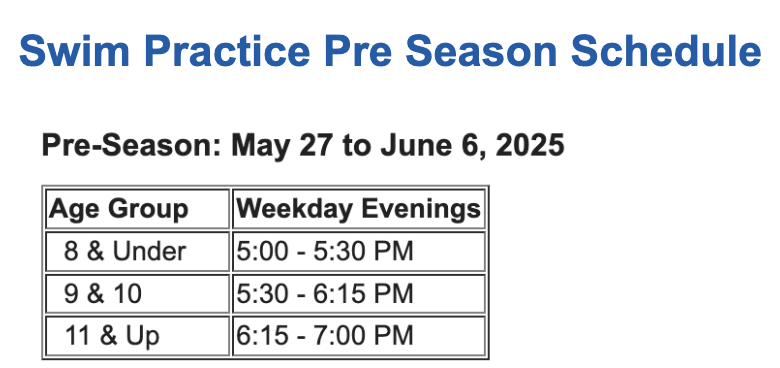 Swim Practice Pre Season Schedule