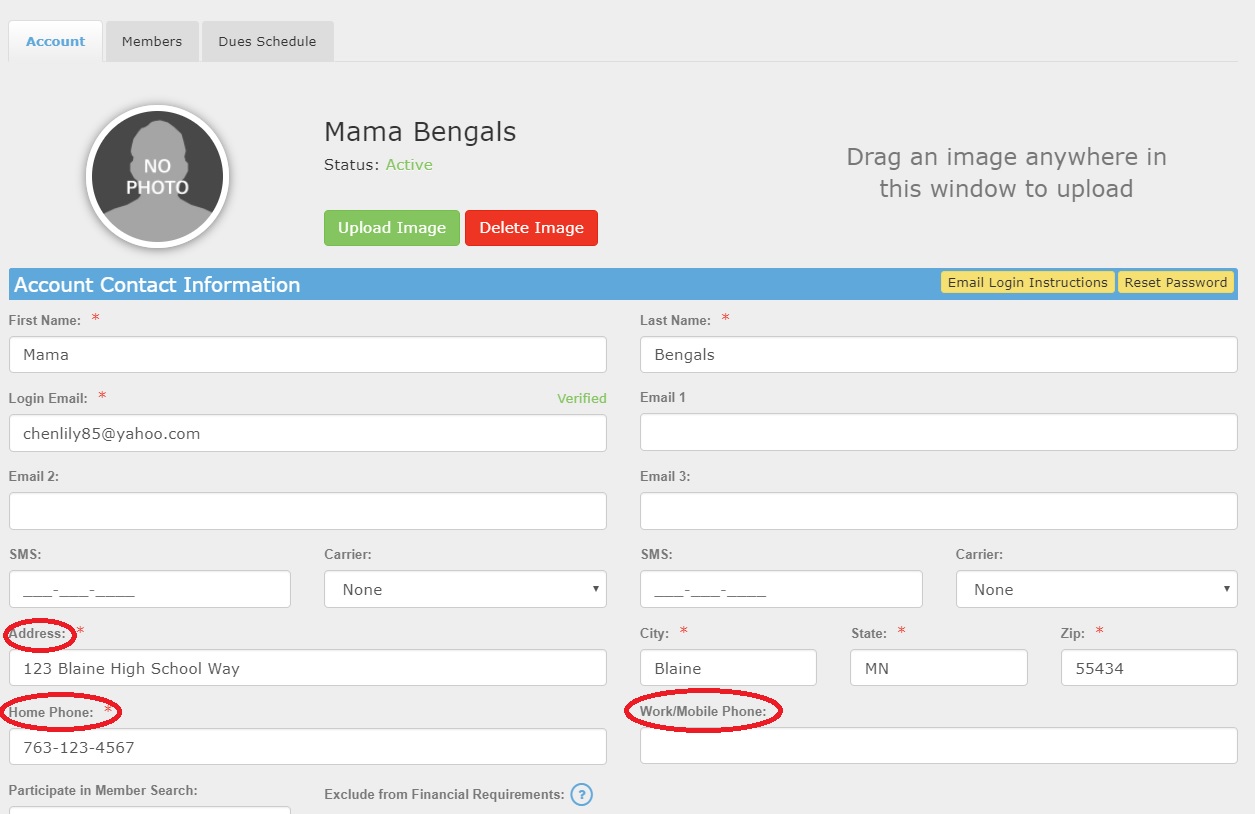 Please make sure your emails, address, and phone numbers are accurate. Please Save your changes.