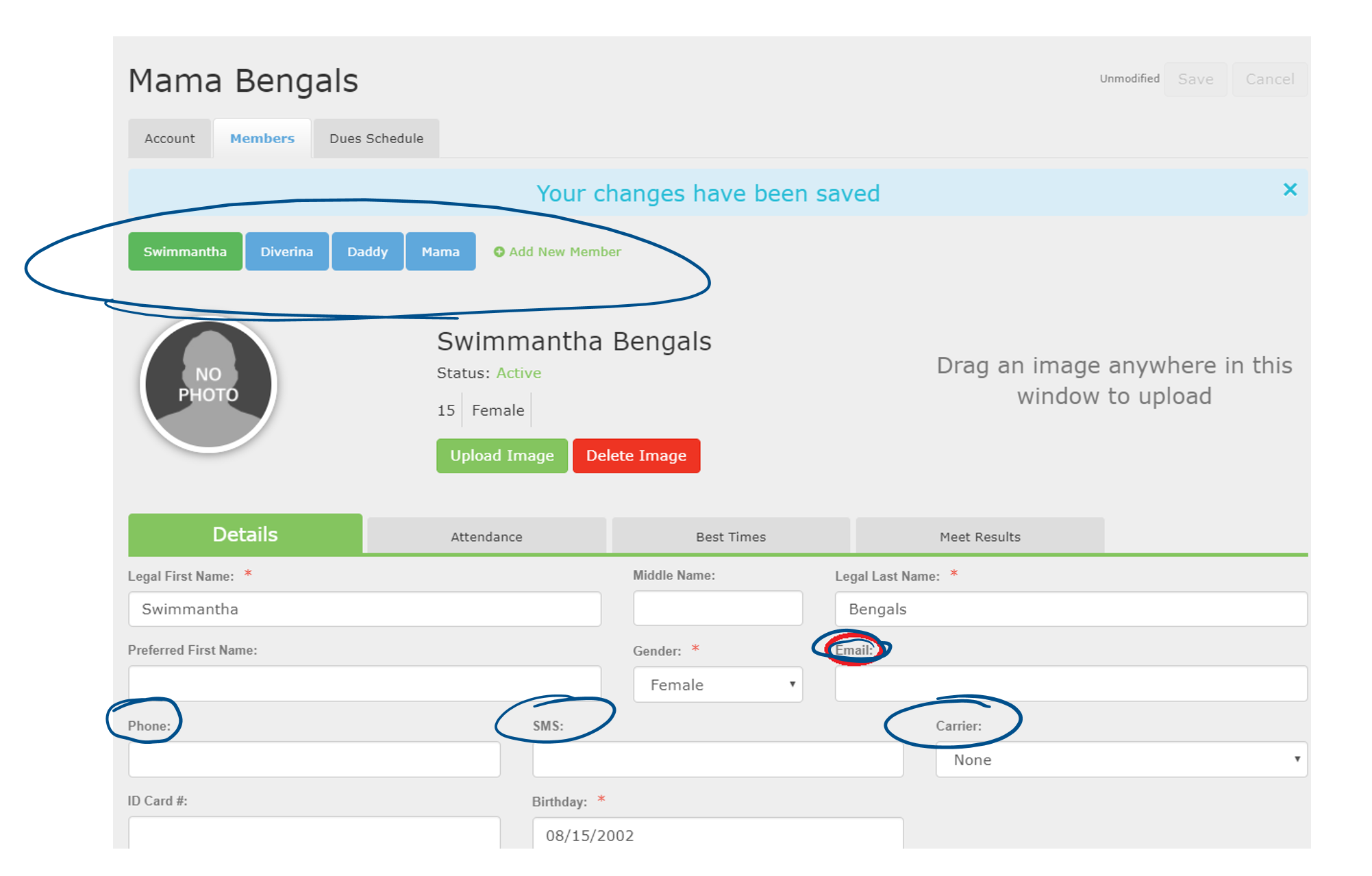 Next, click on the “Members” tab on the top and you should see yourself as a member, maybe your spouse, swimmer and/or diver accounts.