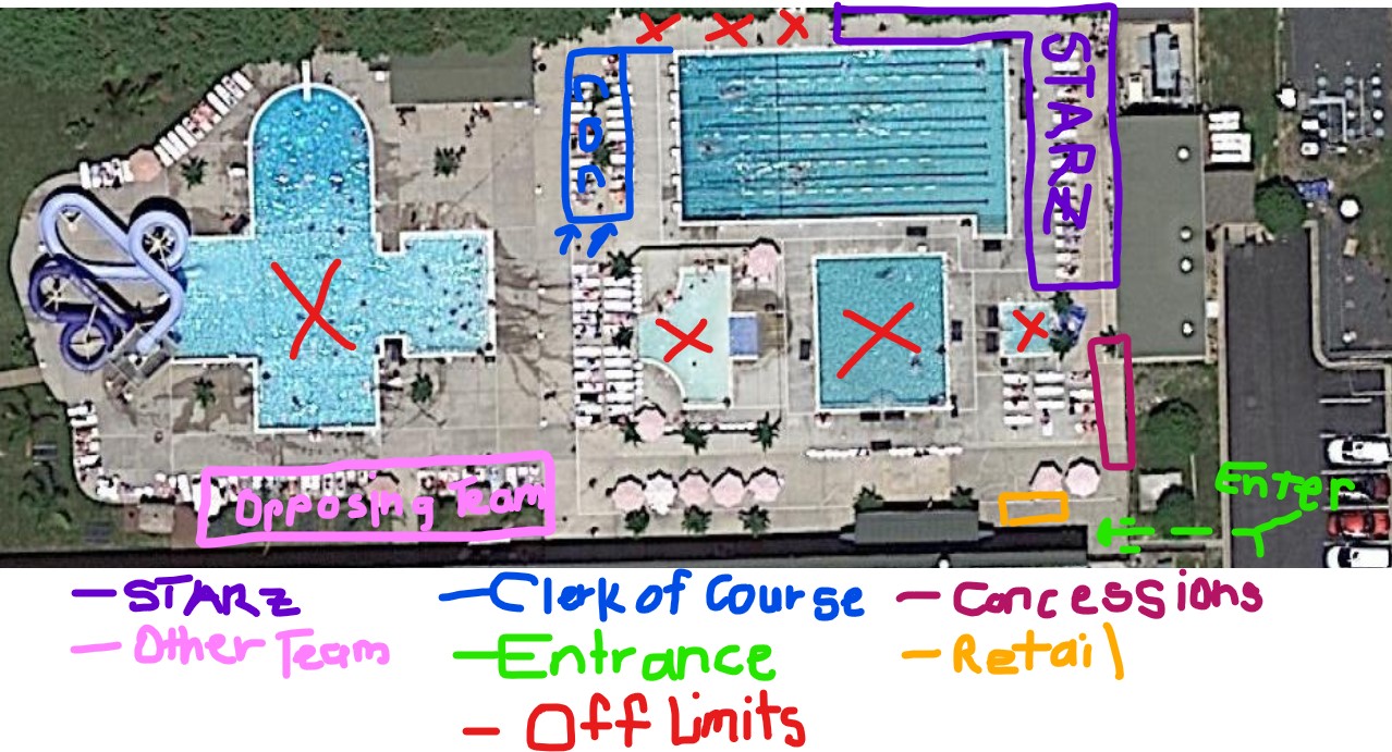 Arena STARZ will sit at the turn end of the pool and along the fence from the Life Guard stand to the turn end of the pool.