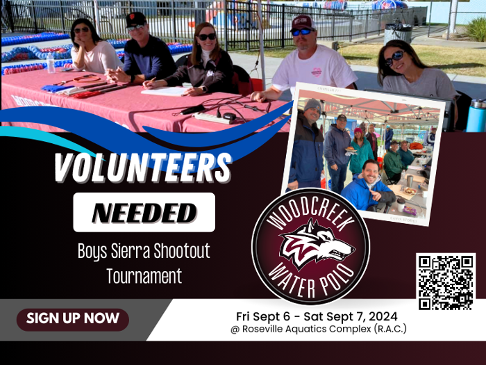 On Friday Sept 6 to Sat Sept 7, 2024 Woodcreek Water Polo is one of the pools involved in hosting the Boys Sierra Shootout Tournament. Therefore, we are in need of volunteers to help with the desk and collect money/venmo at the gate. No experience necessary, we have amazing volunteers available to help train you if necessary.