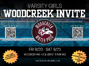 2024 Woodcreek Invitational (Varsity Girls) September 20th and 21st, 2024 Link to Brackets $7 per spectator admission will be charged at each pool - each day. Varsity Girls are currently in the Platinum Bracket - E2 1st game for Woodcreek VG is Fri @ 10:50AM at the R.A.C. Coaches issue early release items For Questions re: Girls Schedule and tournament - please direct to Coaches TOURNAMENT POOLS AND SCHOOL ADDRESSES Woodcreek HS (RAC) 3051 Woodcreek Oaks Blvd. Roseville, CA. 95747 * RAC: Park in front of the pool, dirt lot,...
