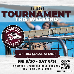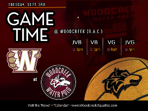 Whitney at Woodcreek - Tuesday 9/3 JVB 4pm • VB 5pm • VG 6pm • JVG 7pm Game is hosted at the RAC JV Boys - Early Release at 2:45PM Please try to be there for all squads for cheering and supportive dialogue. Remember - no artificial noisemakers on the pool deck. Please be respectful to the officials. Wear your team Nike polos on game days. GATE Gate fees for the game are as follows: General Admission $8.00 Student/Child*/Senior/Military $5.00 *8yrs and under are free Cash or Venmo accepted We...