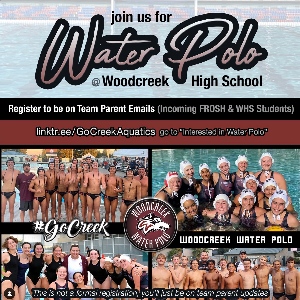 Interested in Fall Water Polo? Fall Woodcreek HS Sport • No Experience Required. Swim background is Helpful. New Student Athletes are Welcome. Updates Updates as of 8/15/24 8/20 + 8/21: Athletes can test sizing for water polo suits before ordering on 8/20 TUES after School and 8/21 at the Parents MTG 8/21/24 Team Parent Meeting 8/21/24, WED 530pm at the RAC (stands) - MANDATORY for all parent(s) 8/23/24 ALL Orders Close for Suits, Swag, and Gear Orders - see News section (close 8/23 FRI at Noon) 8/24/24 Water Polo Training...