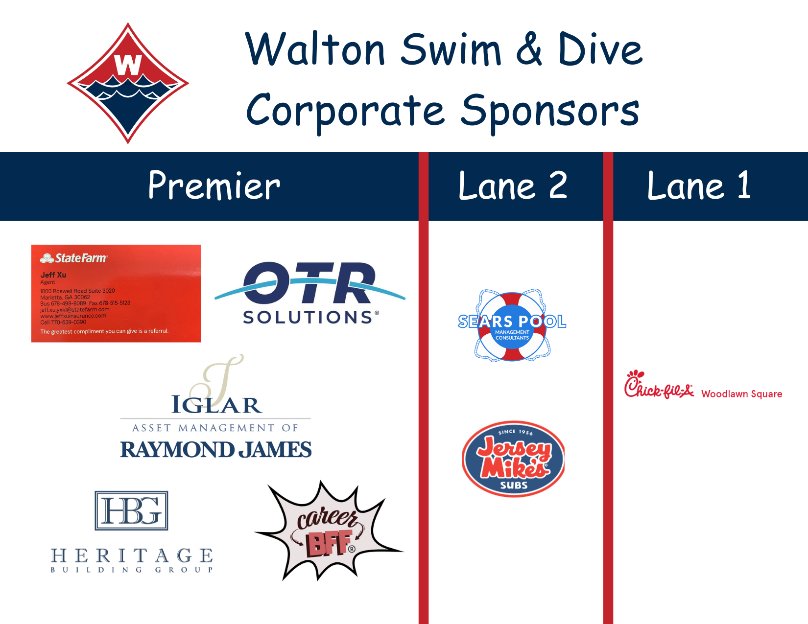 The Booster Club raises money through membership dues, fundraising events, and through community and individual sponsorships. The Fundraising Committee was specifically created with the sole purpose to help raise money and generate community awareness about the Walton Swim & Dive Team.