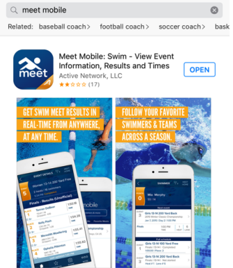 Yes! Meet Mobile is a helpful App that allows you to view event information, results, and times for your athlete. It's available for iPhone and Android and can be used for all meets that are connected to this system. (most clubs use this app too)