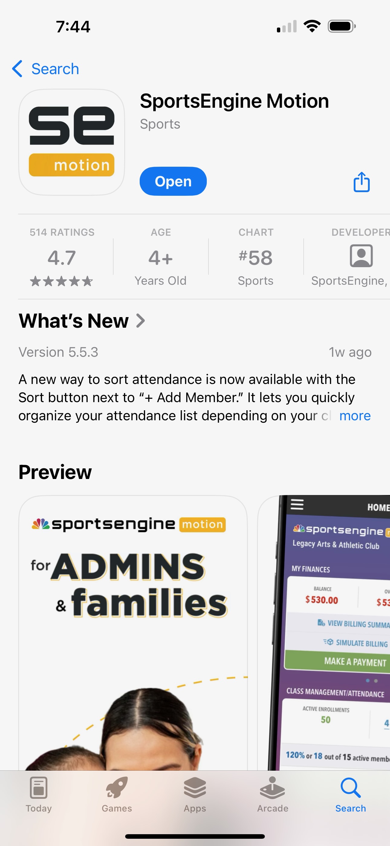 - Sports Engine Motion: Allows quick access to up-to-date swim meet info, events, news, job sign ups and more. If you completed registration with the Overlook team, you should be able to search and find the Overlook team through the app. Please note that when you search for this in the app store, there are several Sports Engine apps out there: please choose the Sports Engine Motion app and not others such as SE Play, SE Tourney, SE Team Management, etc.