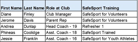 **The remainder of this page is information for our club level administrators of the SafeSport training.**