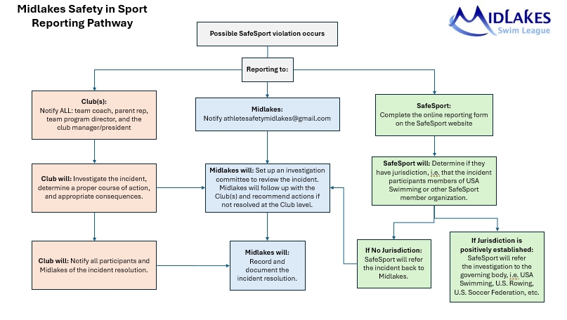 If you experienced or witnessed an incident that gave you reason to believe that there is a safety concern regarding physical or sexual misconduct by individuals connected with a Midlakes team, please immediately report your concern so it can be addressed. Below is the reporting pathway for how to report your concern.