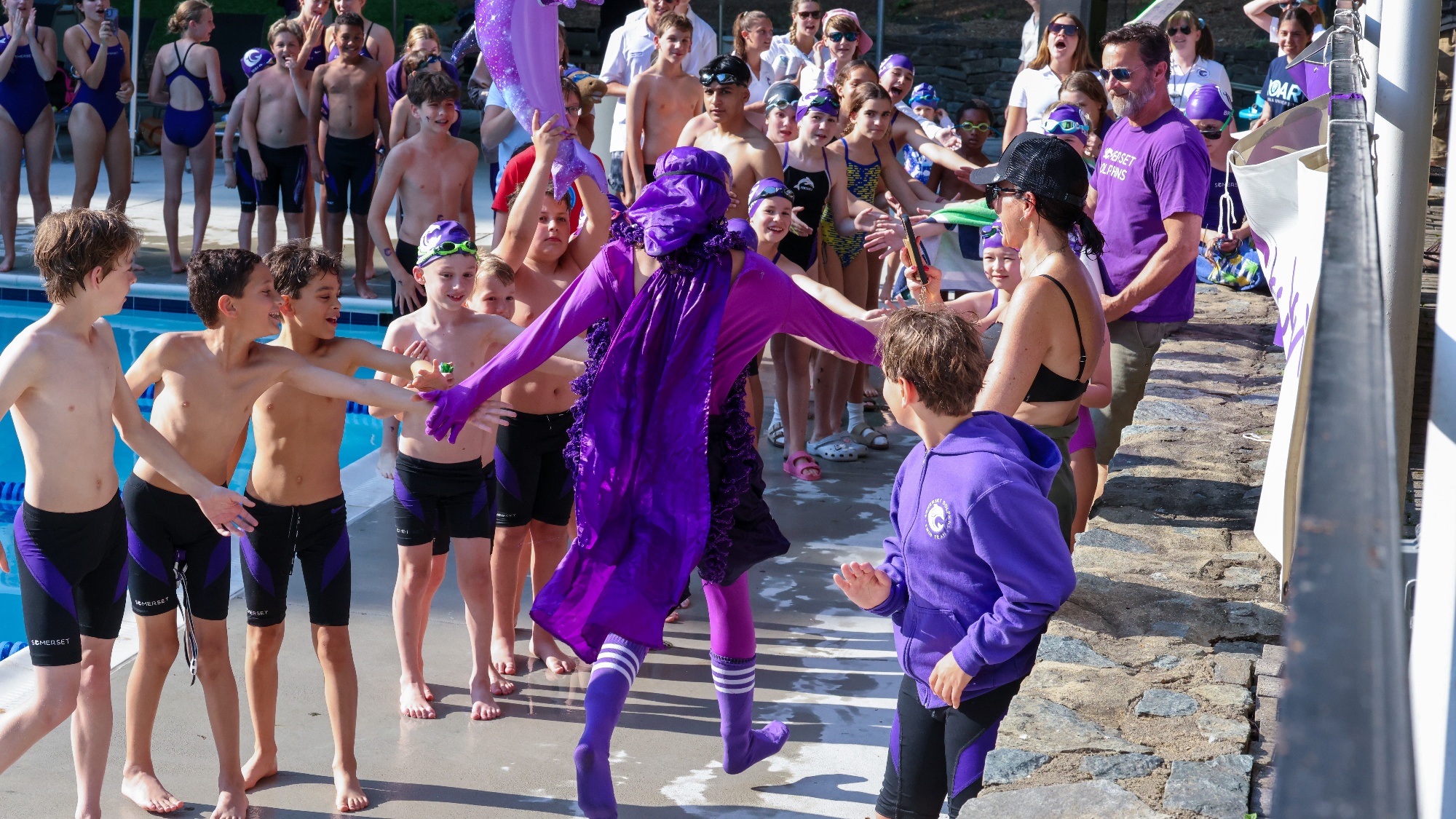 Competitive (scored) dual A Swim Meets occur every Saturday morning during the 6-week competition season from mid-June through July. The team also participates in two all-Division A swim meets: Relay Carnival and Divisionals. B-Meets are unscored and held Wednesday evenings during the season. The regular season ends after Divisionals with a Team Banquet where swimmers receive trophies and celebrate the season. Qualifying swimmers are invited to participate in All-Stars the weekend after Divisionals. We also host social events throughout the season. The goal of the swim team is simple: have fun, make friends, and create memories.