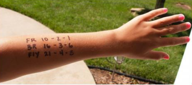 - Thin dark sharpie (to write swimmers events on their hands so they don't miss their races).You will use the meet program to write the Event, Heat, Lane & Race on your swimmer.